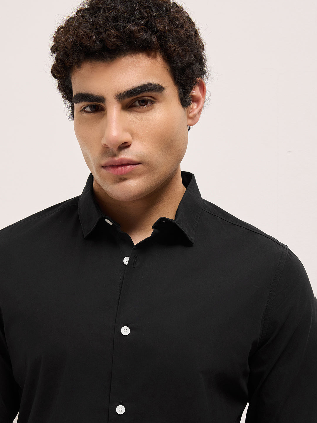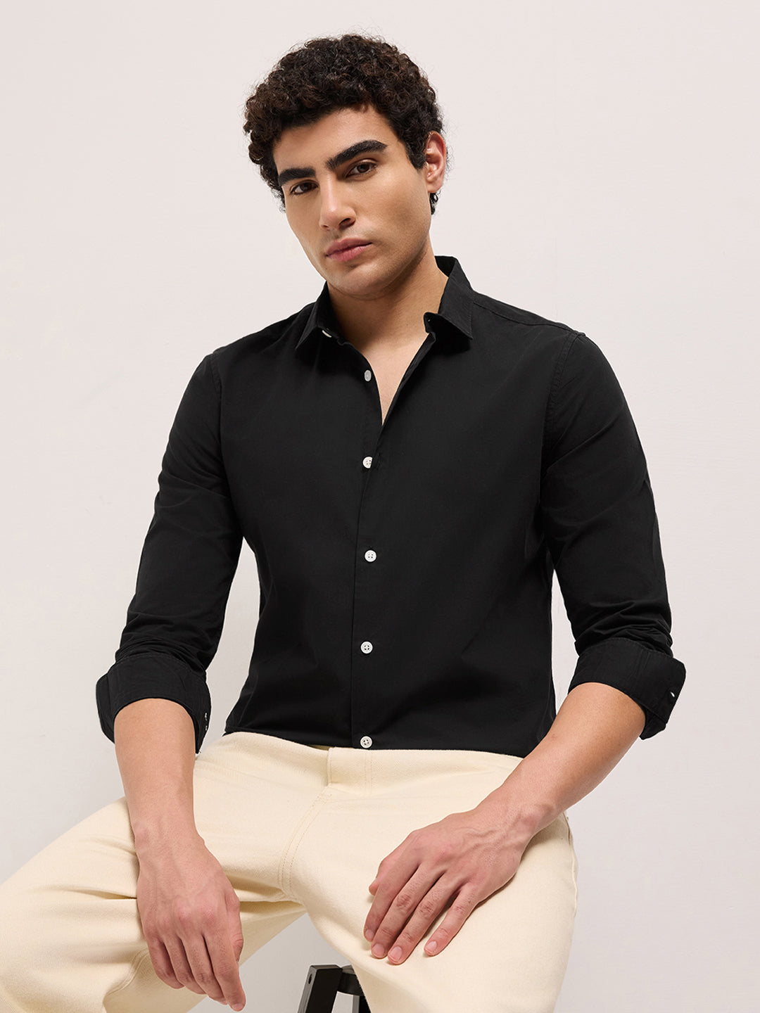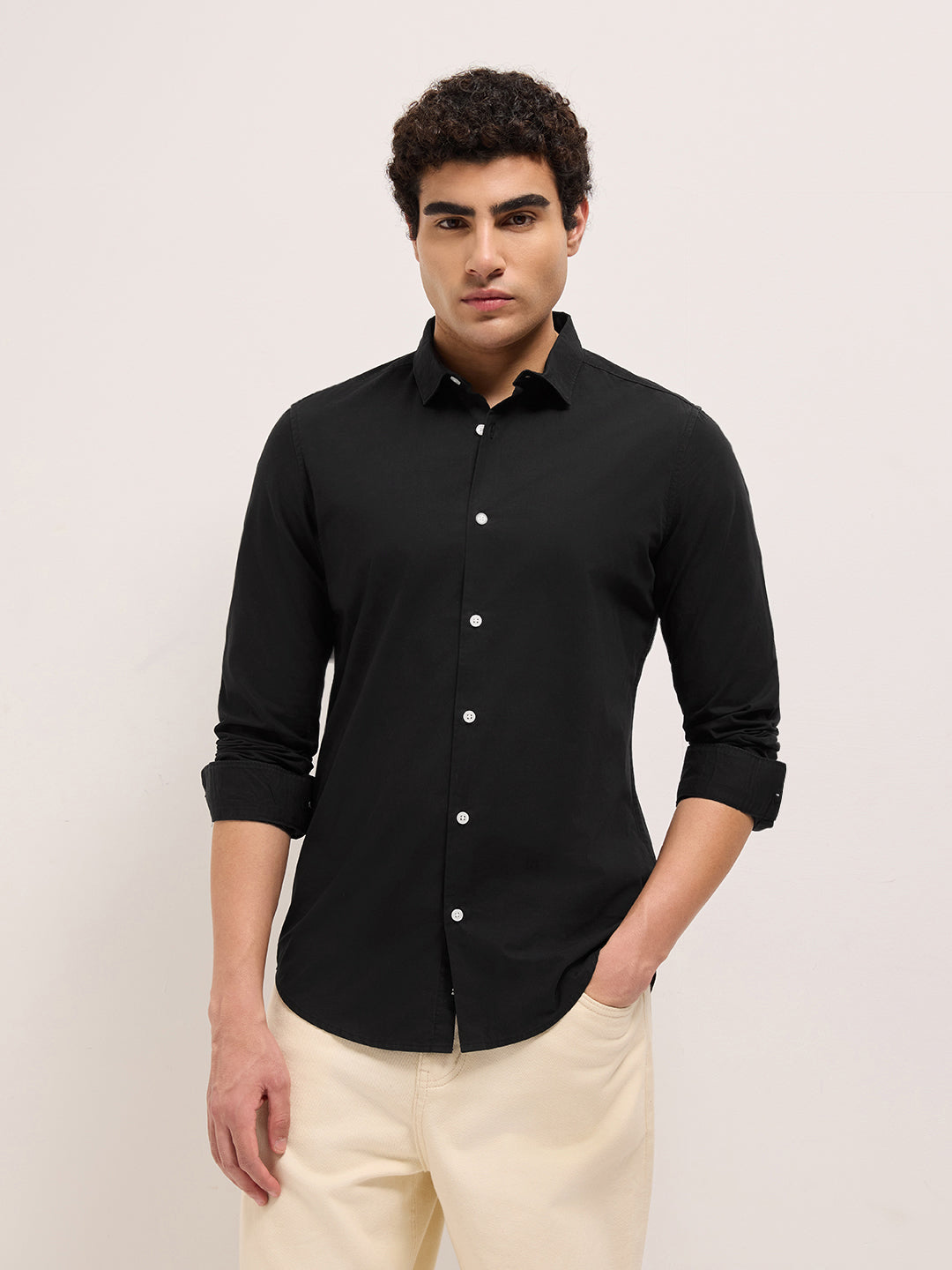 Black Solid Cotton Slim Fit Casual Shirt