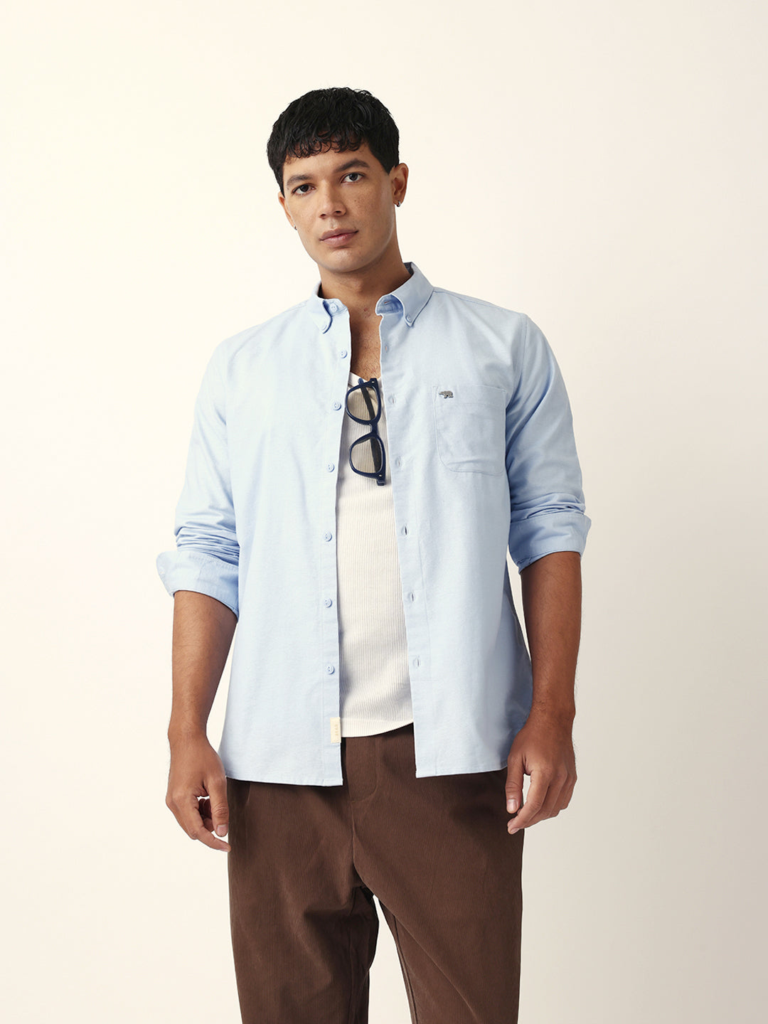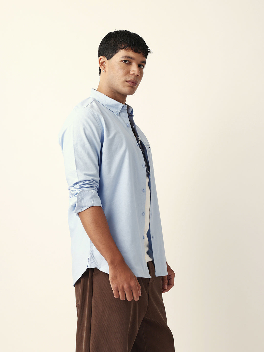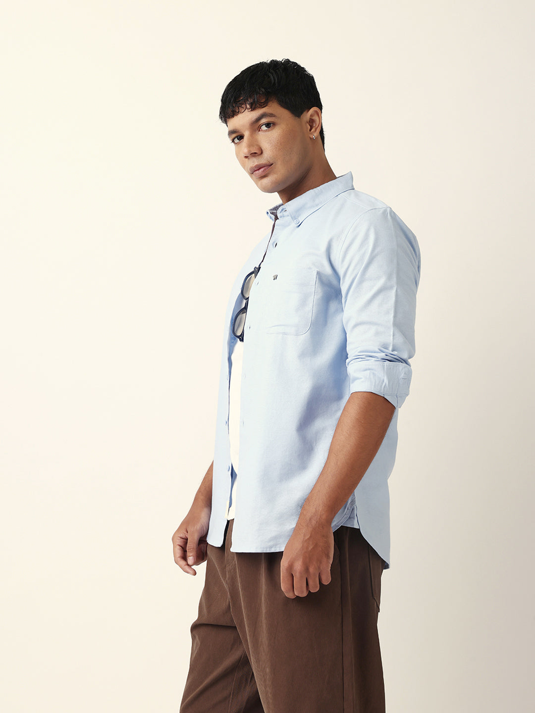 Shop Light Blue Solid Slim Fit Casual Shirt with Button-Down Collar Online. Explore our wide range of men's clothing collections. Free Shipping Hassle-free returns
