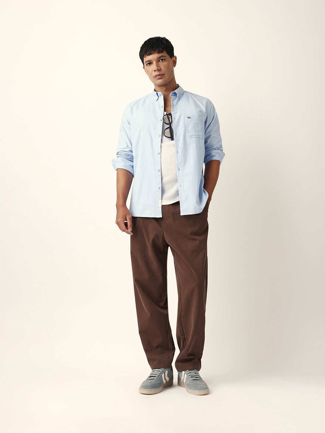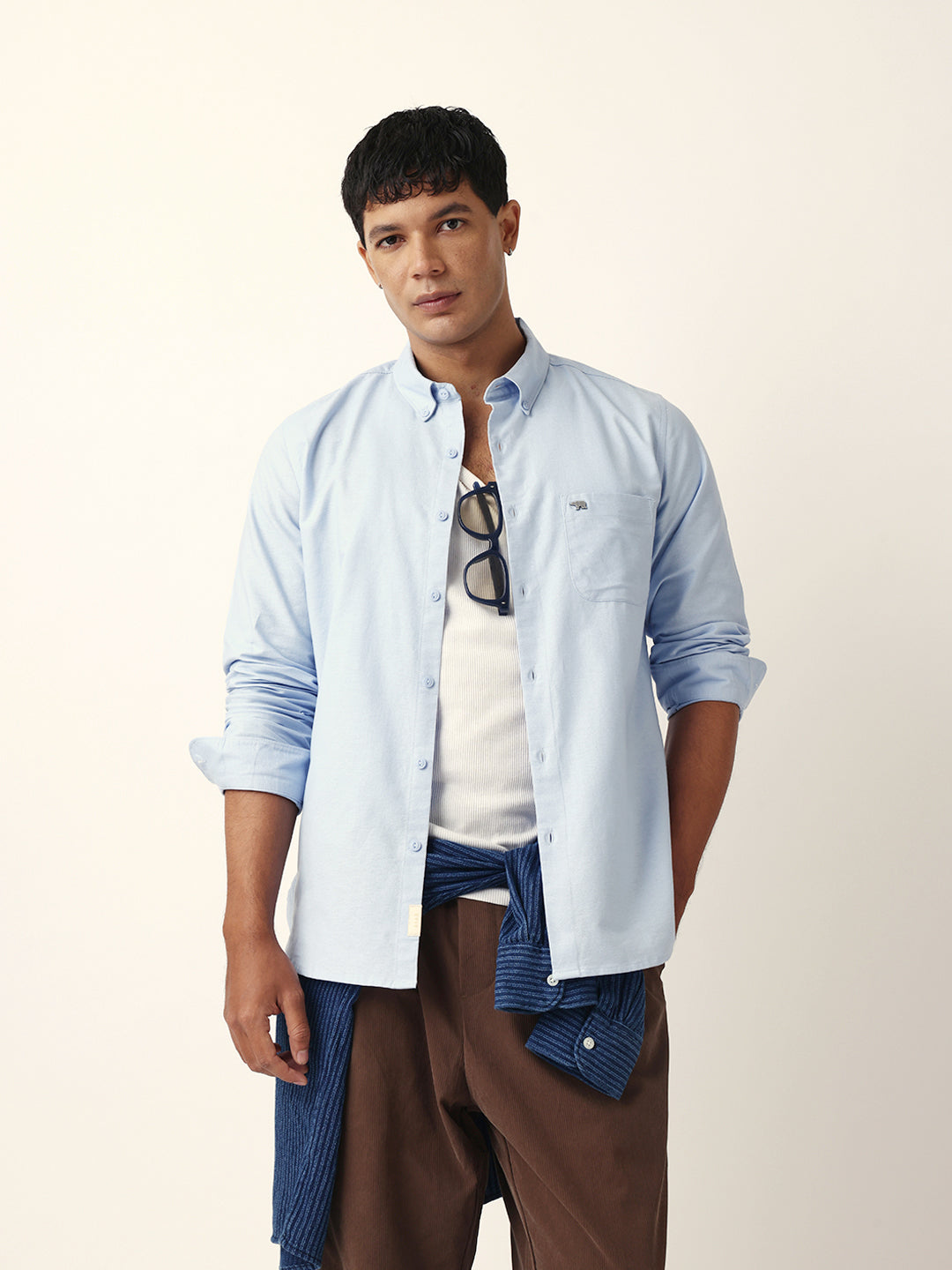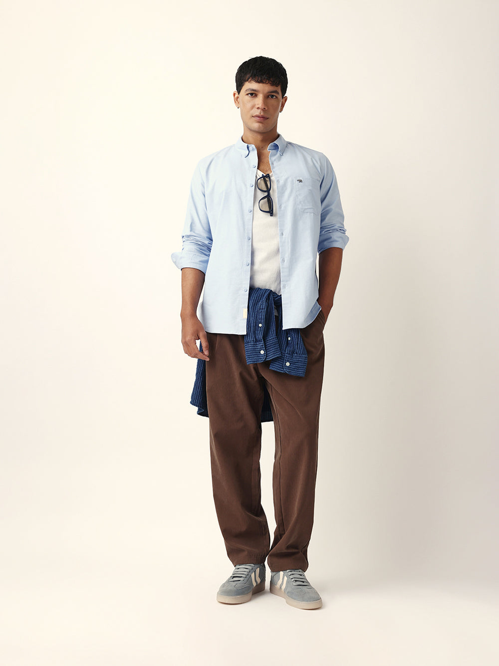 Shop Light Blue Solid Slim Fit Casual Shirt with Button-Down Collar Online. Explore our wide range of men's clothing collections. Free Shipping Hassle-free returns