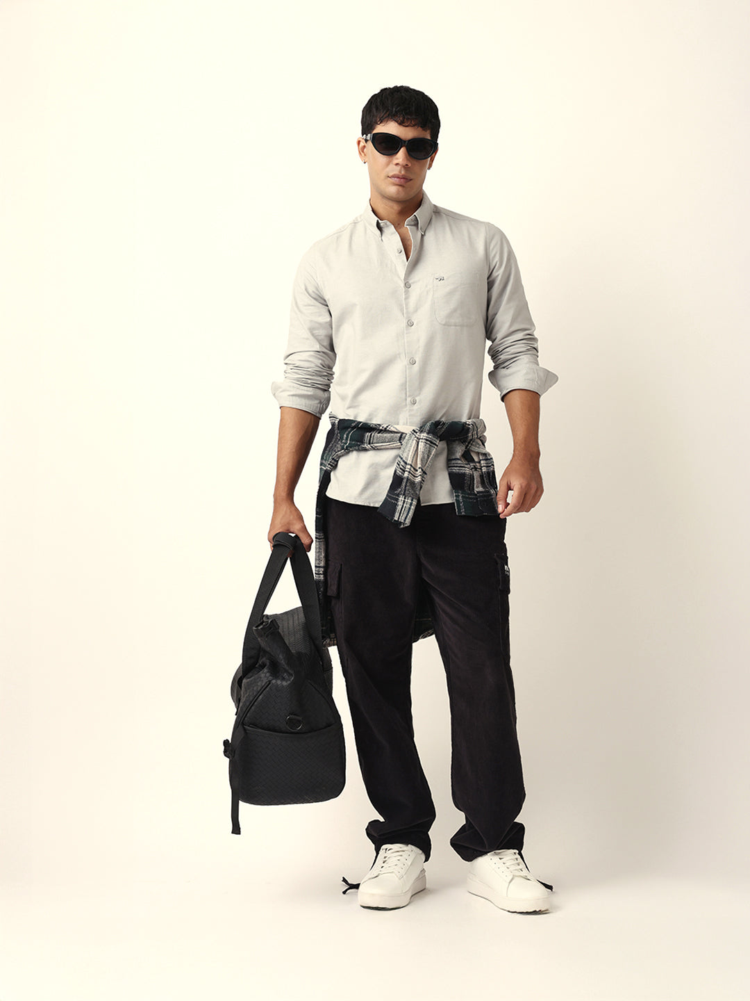 Shop Grey Solid Cotton Slim Fit Casual Shirt with Button-Down Collar Online. Explore our wide range of men's clothing collections. Free Shipping Hassle-free returns