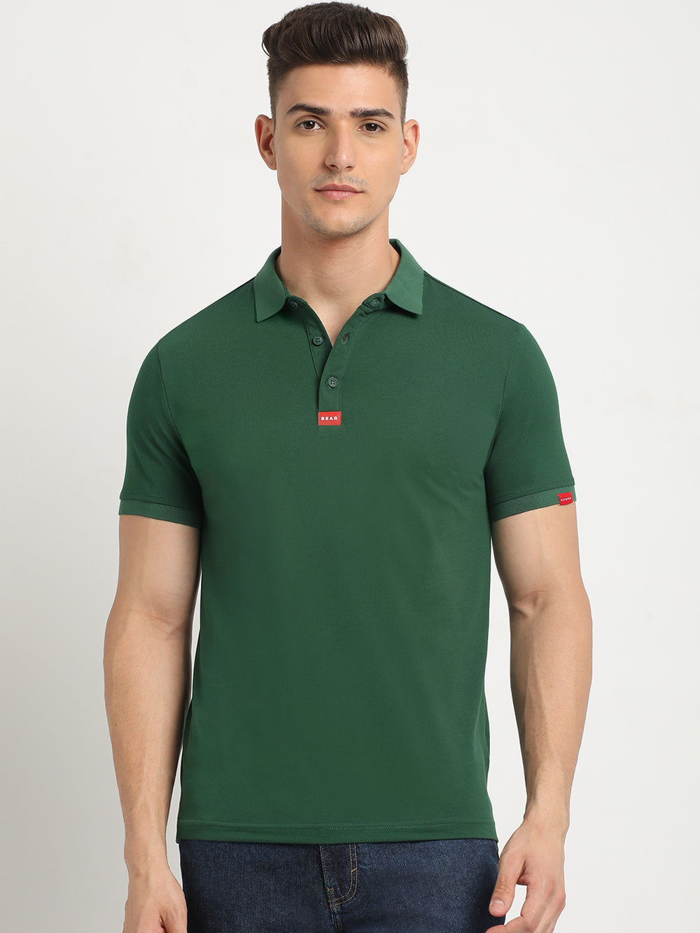Men Green Solid Slim Fit Polo Collar Tshirt