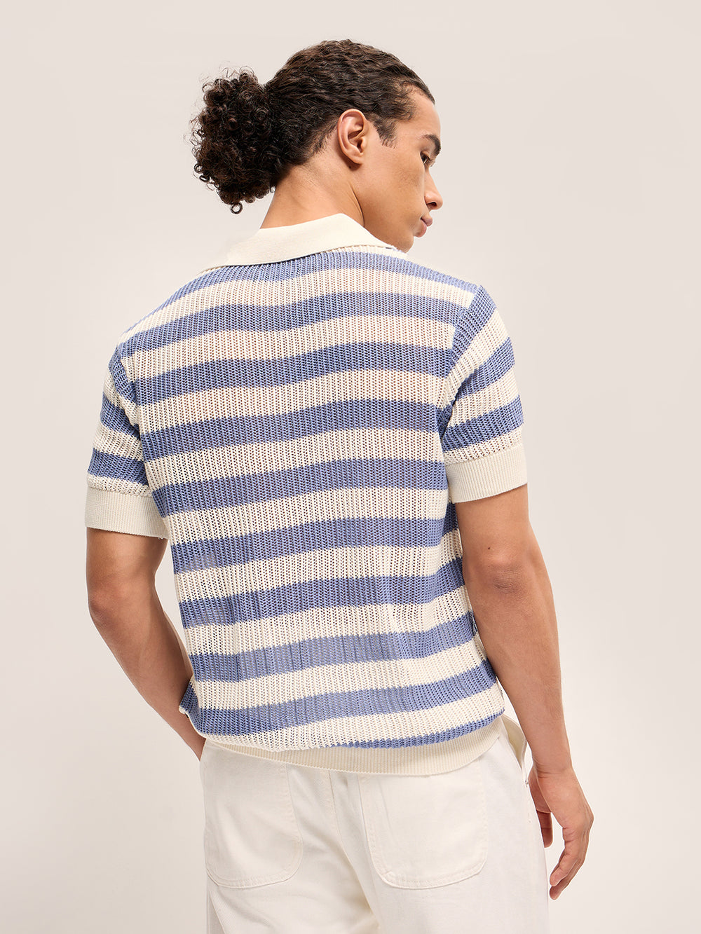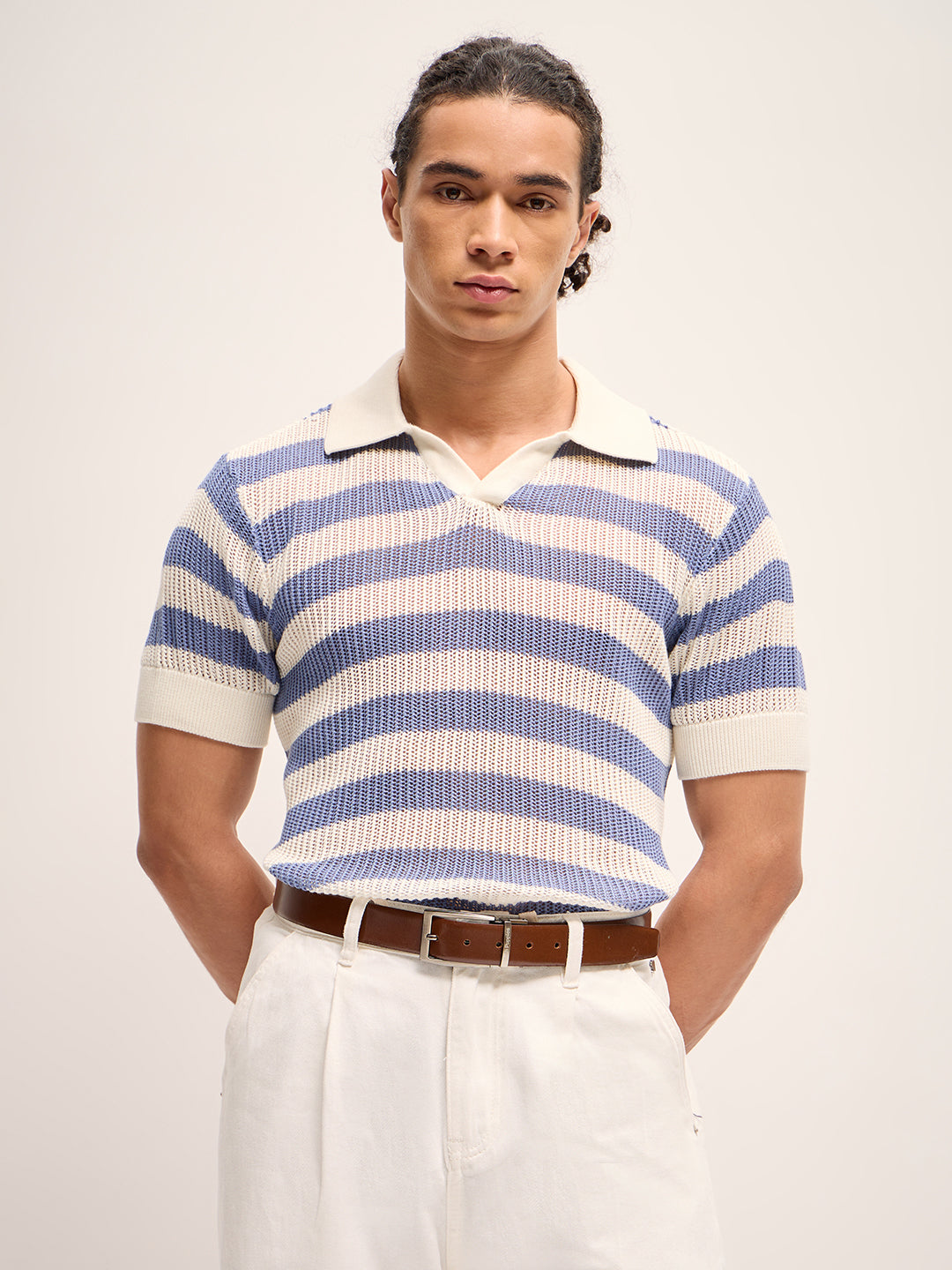 • Collar: Polo collar with a sleek V-notch detail