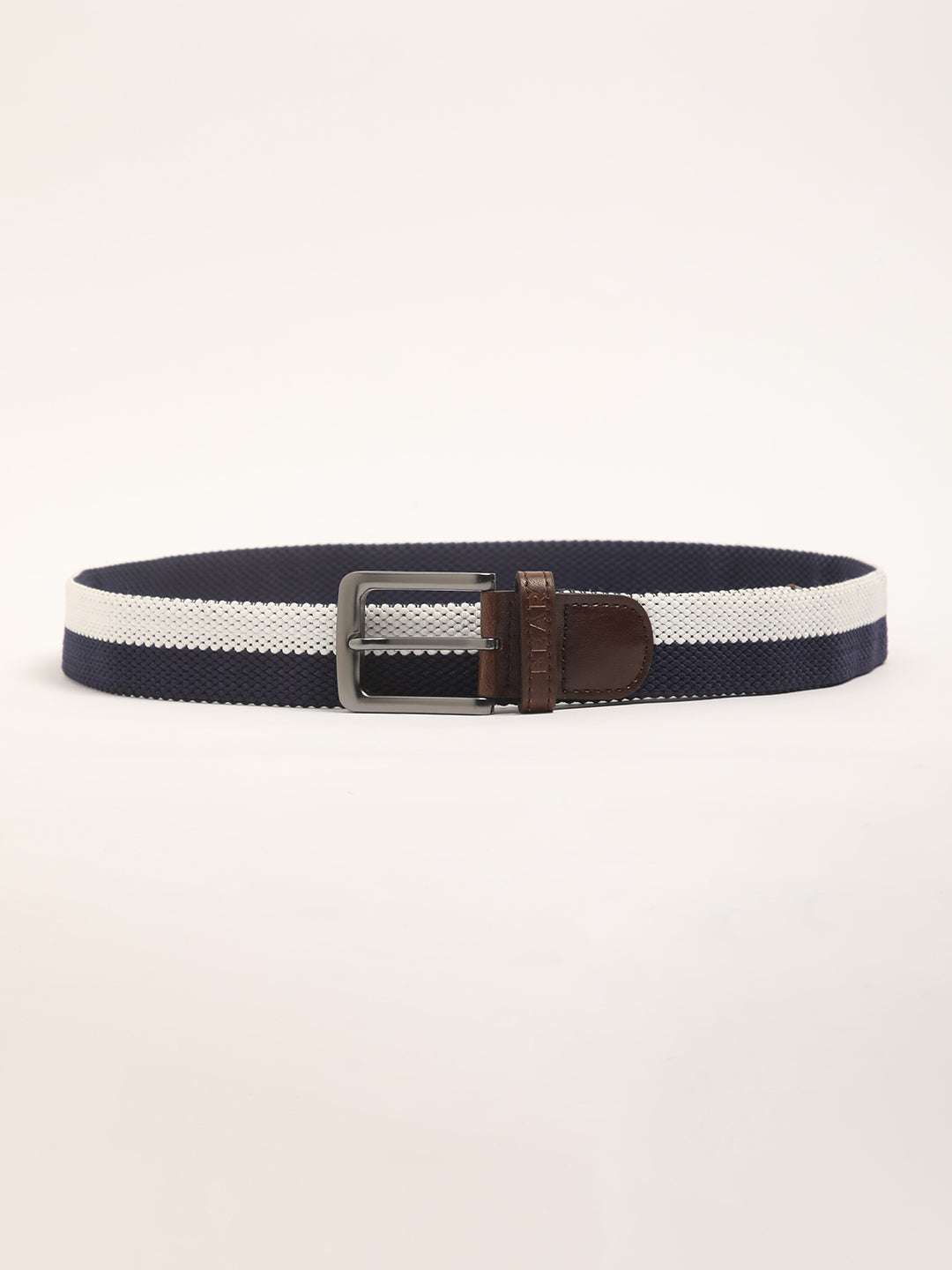 Men Blue Striped Wide Width Casual Belt with Tang Closure