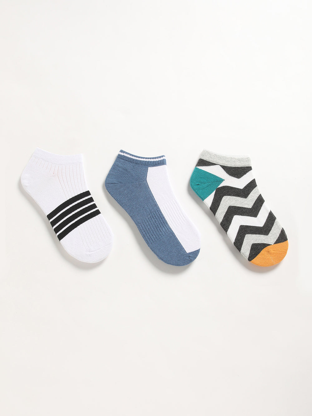 Shop Men Pack of 3 Striped Ankle Length Socks Online