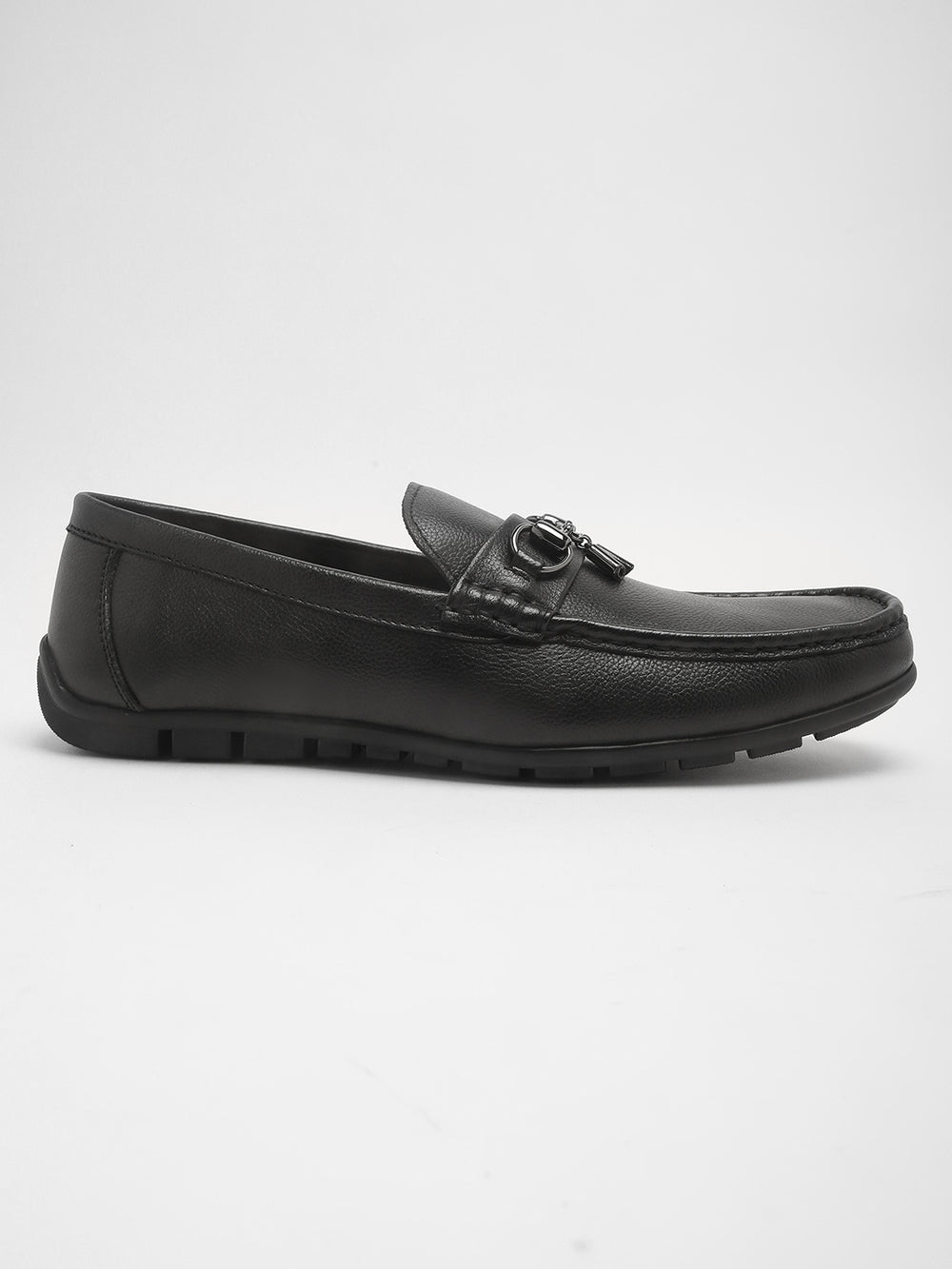 This black textured leather loafer is ideal for wear as Friday casuals to the office and after work, giving that extra confidence to step into both casual and special occasions with equal ease. This loafer features a metal horse-bit detail with a metal tassel accent for an added touch of flair and lightweight,