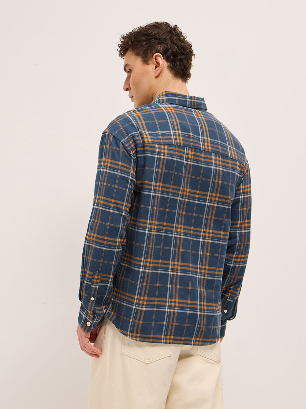 Shop Blue Woven Checked Design Relax Fit Overshirt Online.