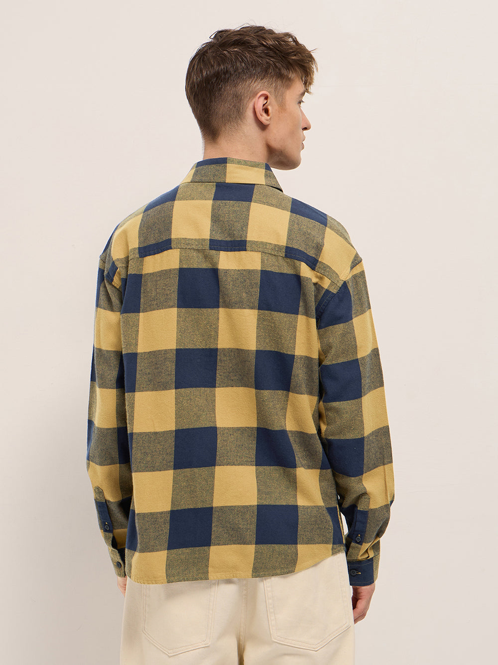 Yellow with Blue Block Checked Design Relaxed Fit Overshirt