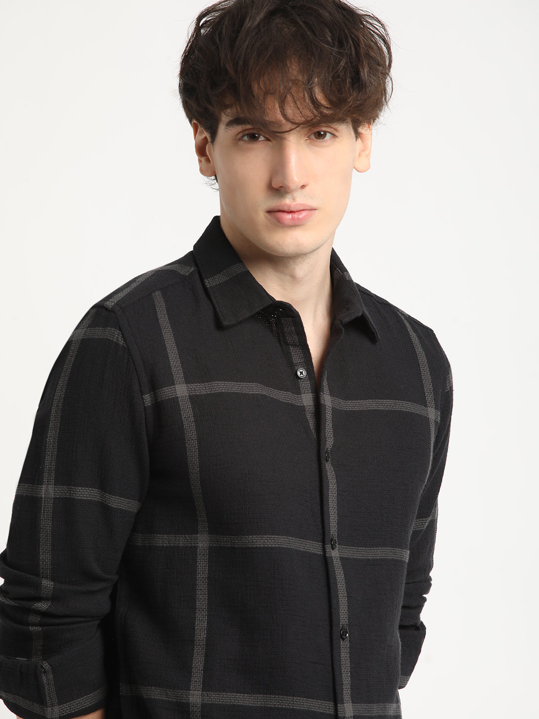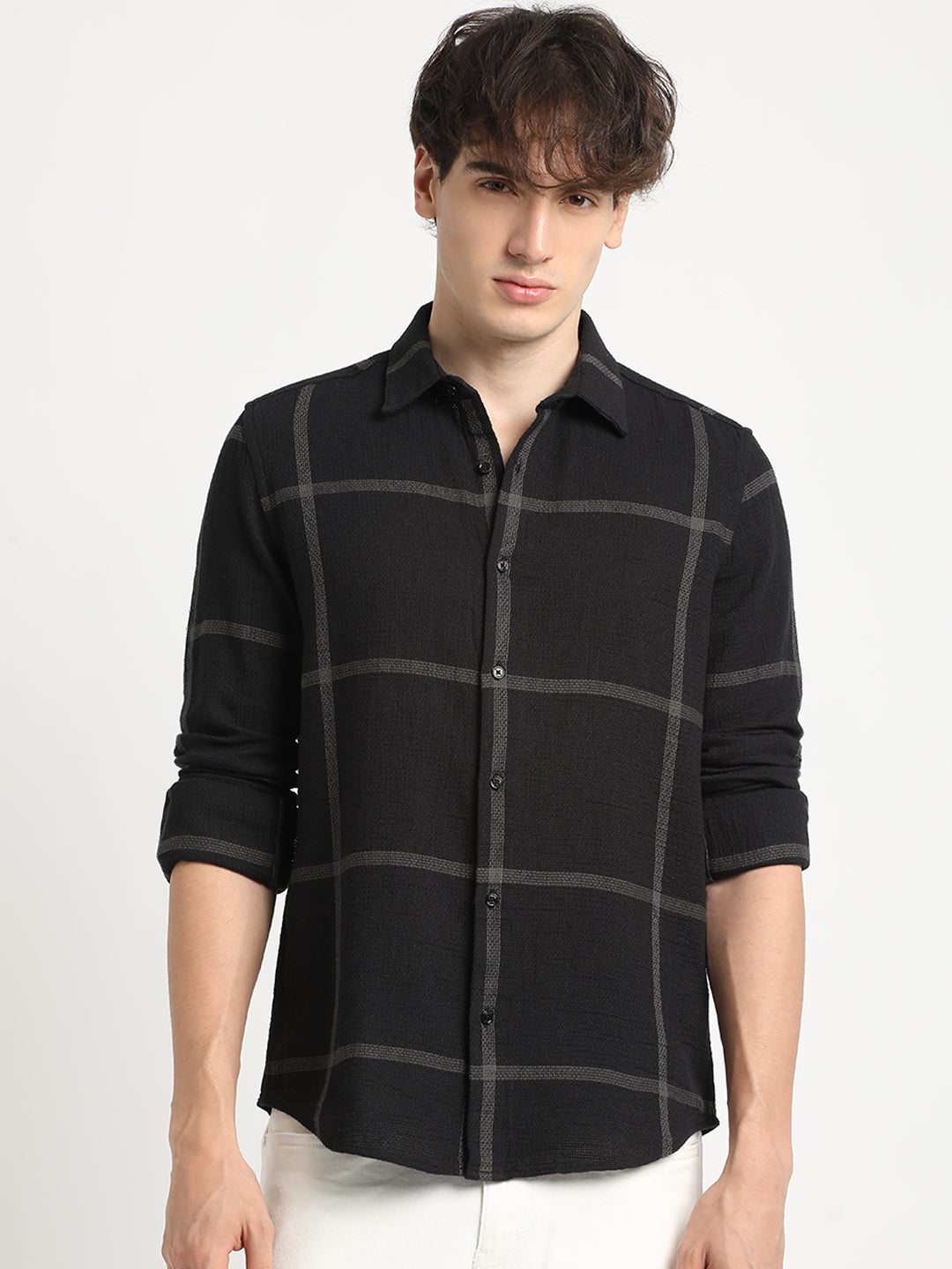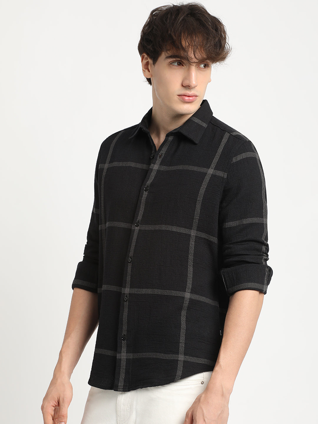 Sabino - Men Black Checked Slim Fit Flannel Cotton Casual Shirt | The Bear House