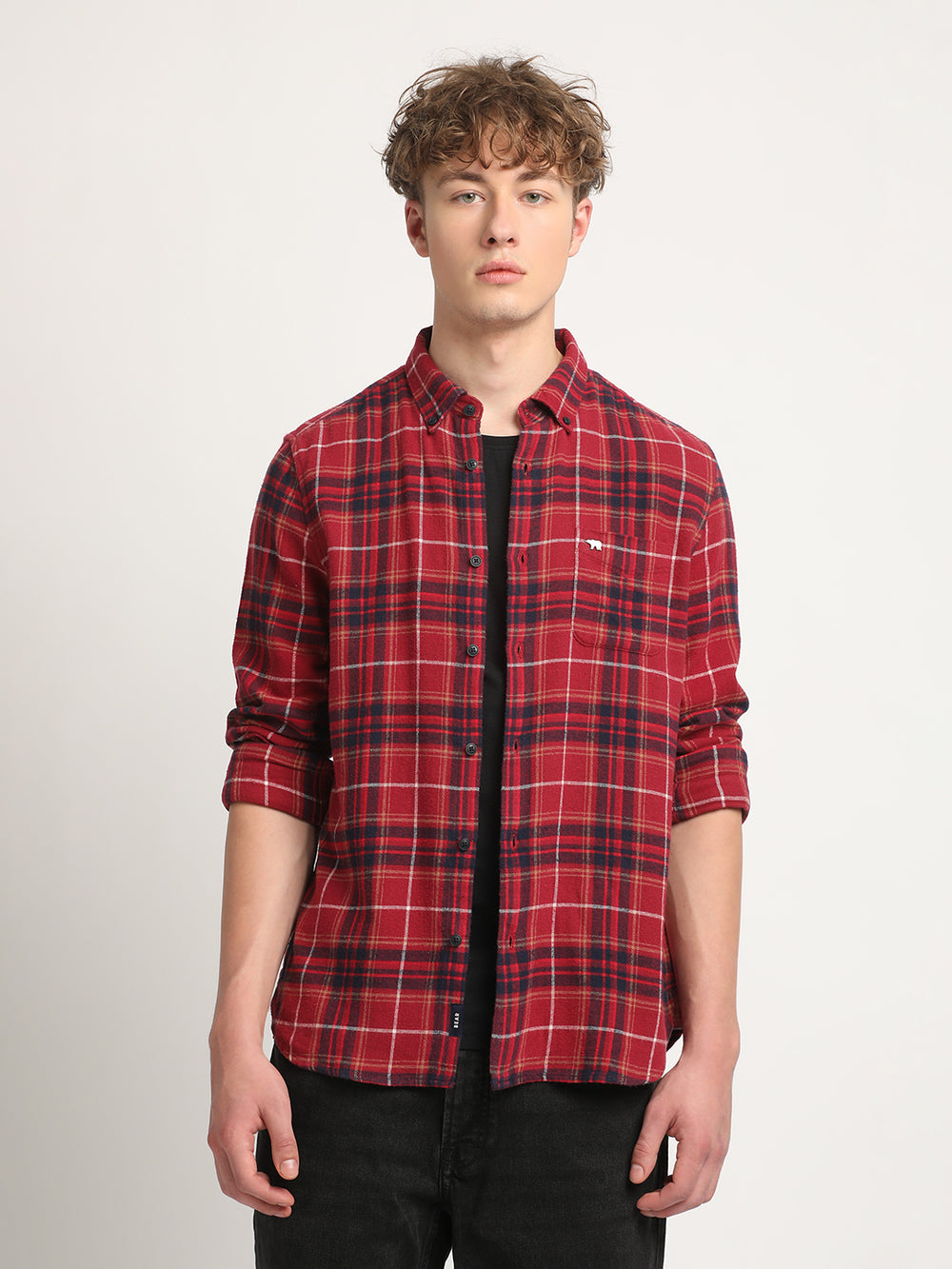 Shop Men Red Checked Slim Fit Flannel Cotton Casual Shirt Online