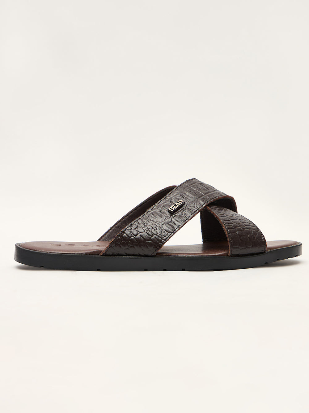 Brown Synthetic Leather Crocodile Texture Comfort Sandal