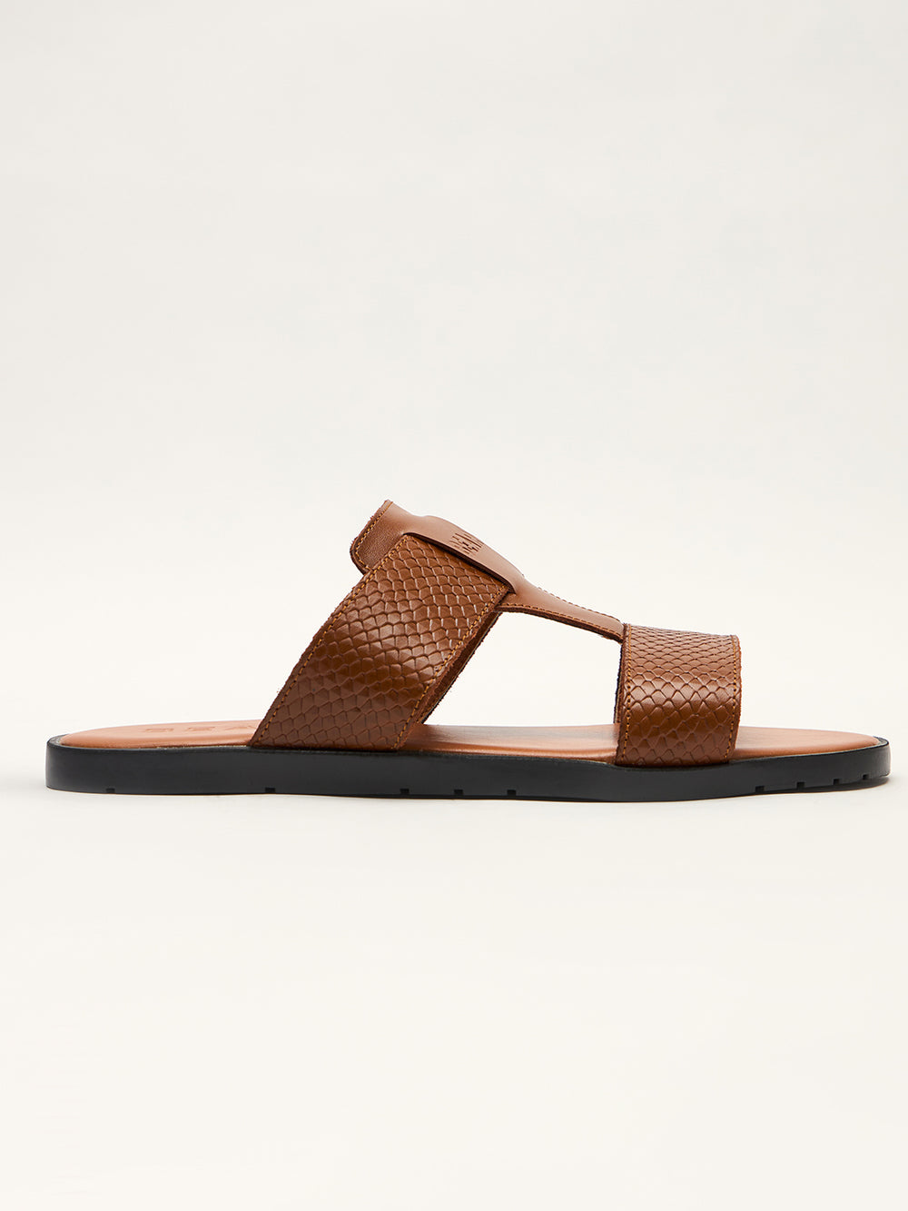 Shop Brown Synthetic Leather Slide Sandals with Crocodile Texture Online.