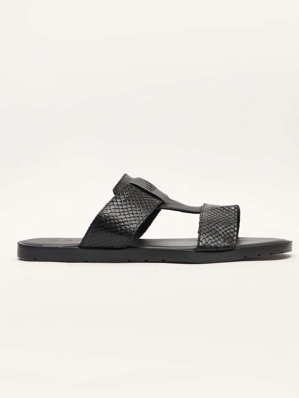 Black Synthetic Leather Slide Sandals with Crocodile Texture