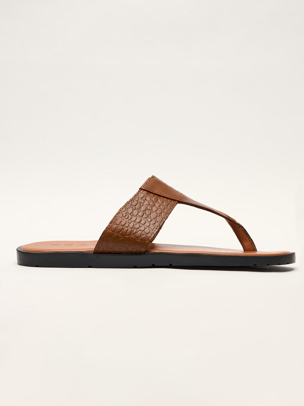 Shop Brown Synthetic Leather Croc-Embossed Thong Sandals Online.