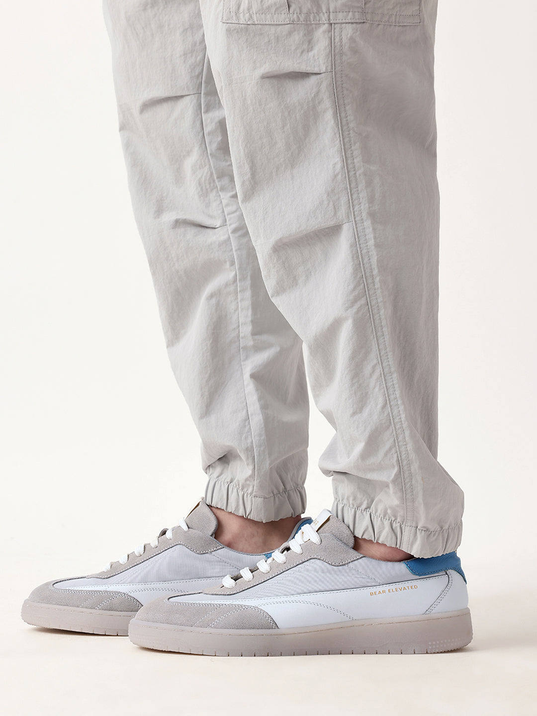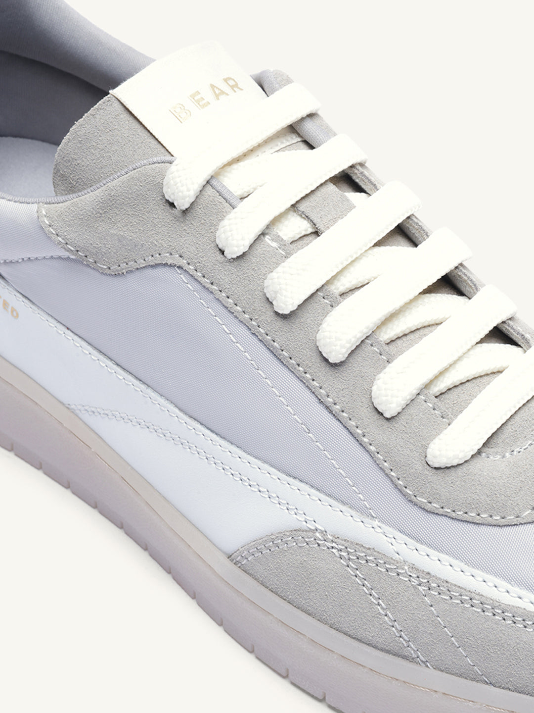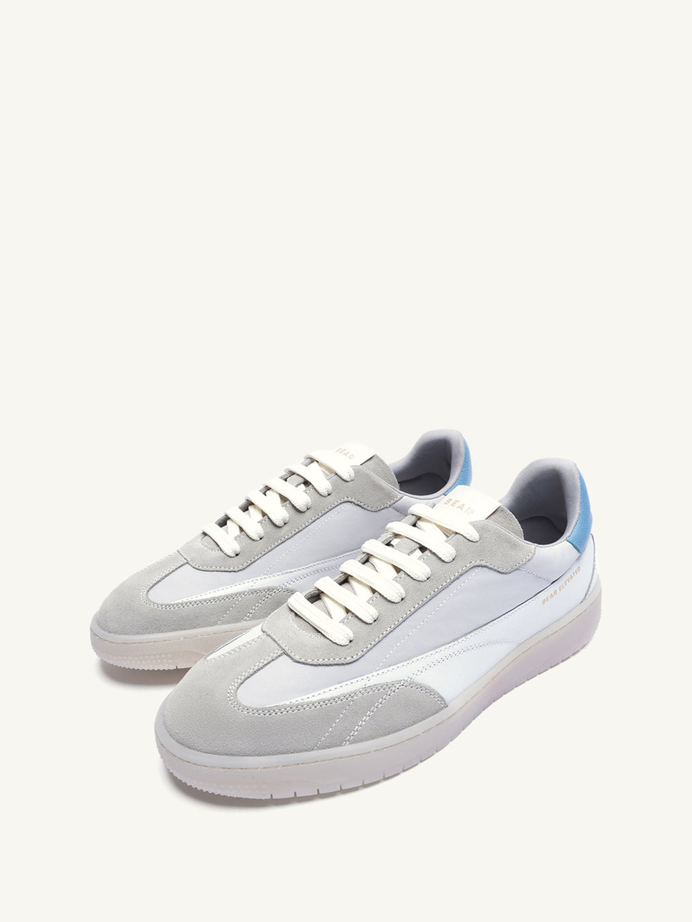 Grey & White Suede Lace-Up Sneakers with Contrast Blue Leather Detail