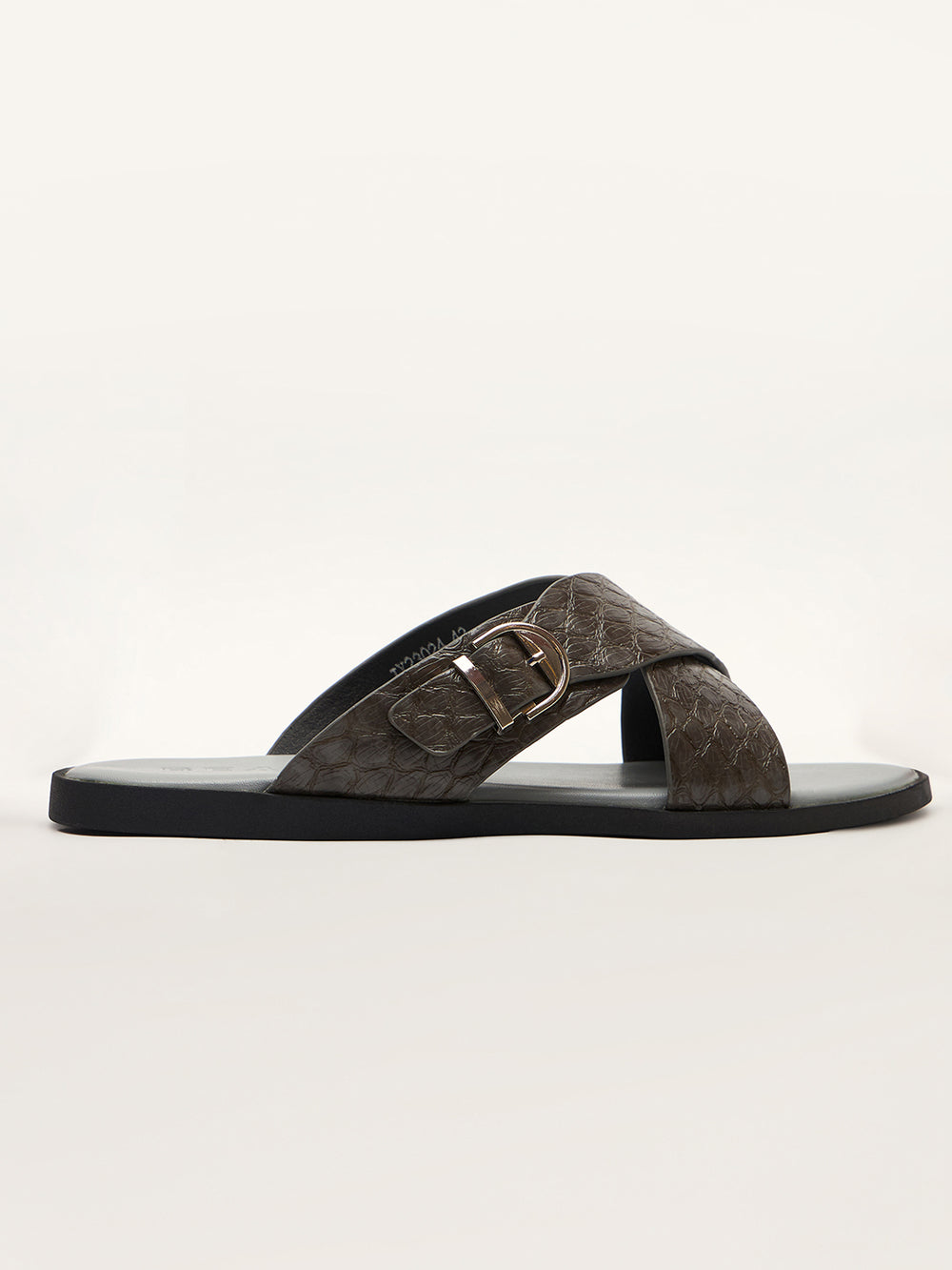 Shop Grey Synthetic Leather Sandals with Crocodile Texture and Buckle Online.