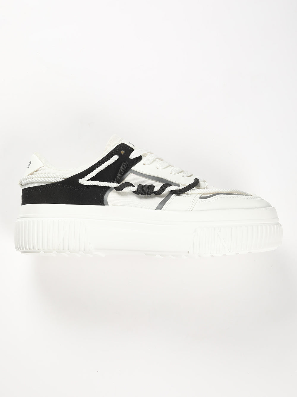 Men's Chunky White Sneakers with Twisted Lace Detail
