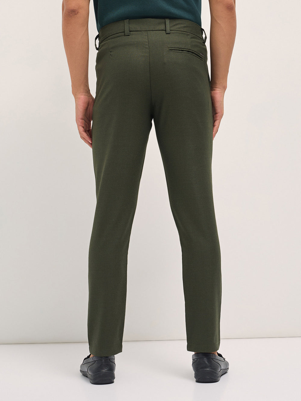 Olive Slim Fit Formal Trousers with Side-Elasticated Waistband