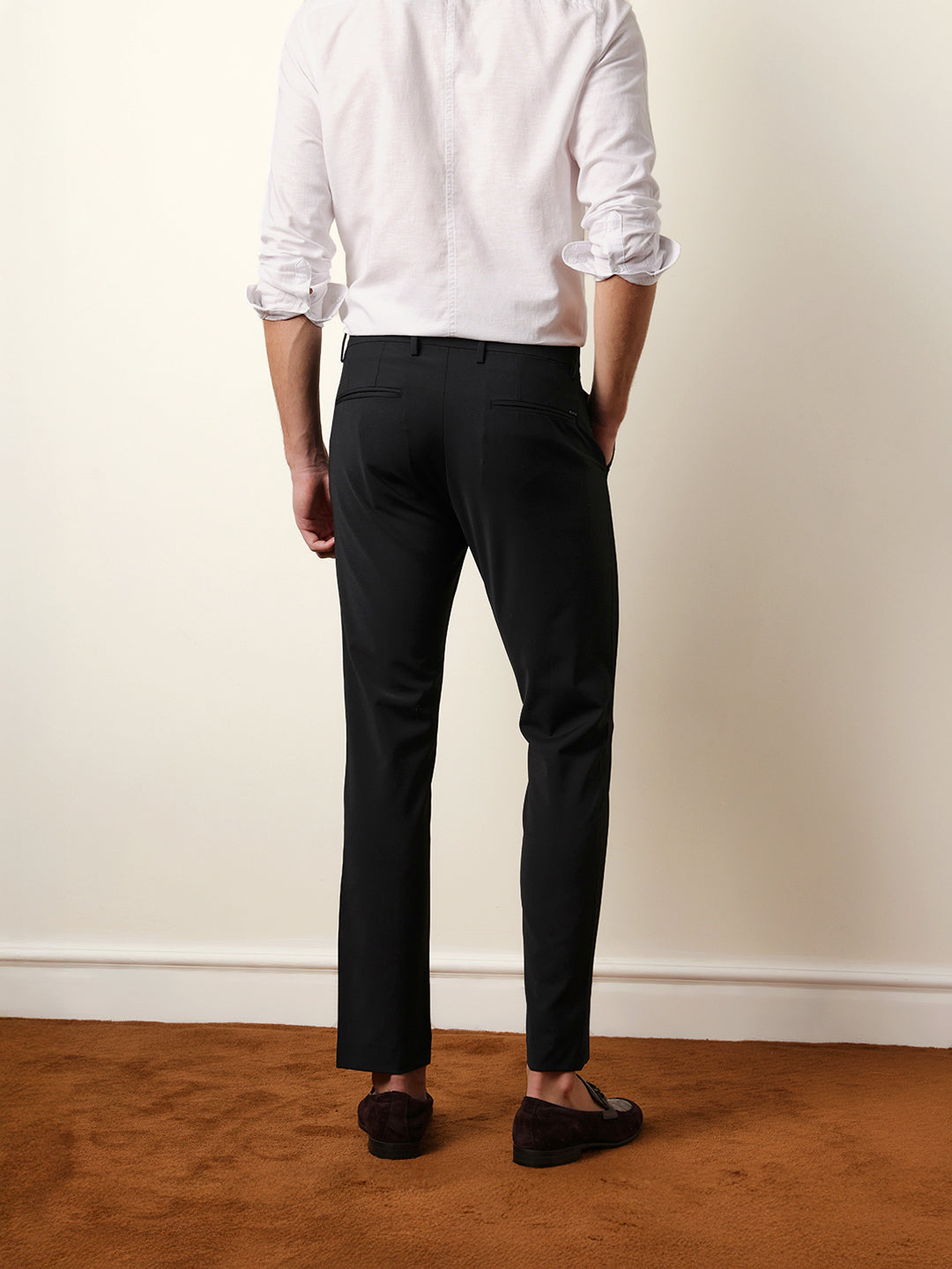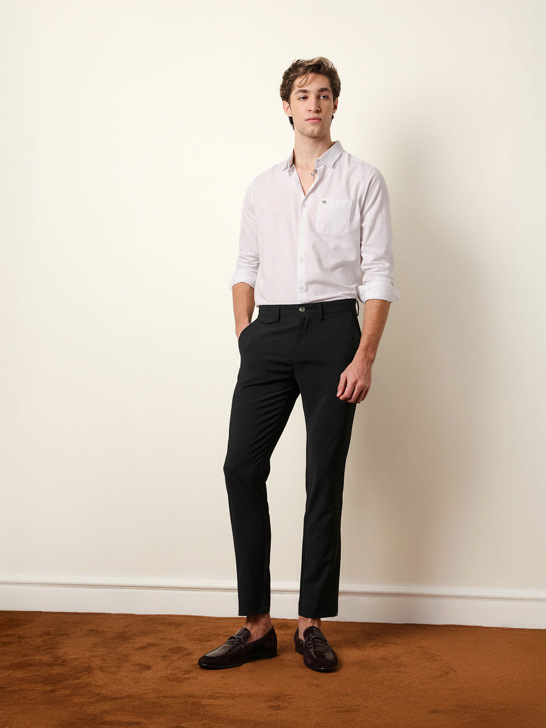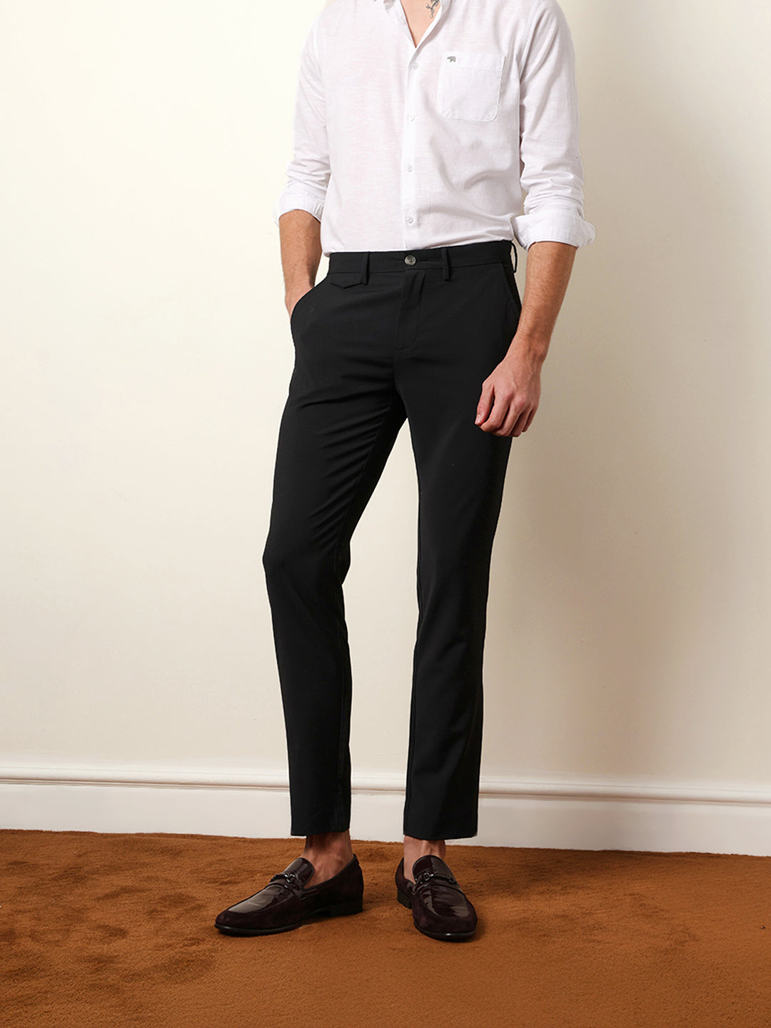 Shop Black Solid Woven Slim Fit Formal Trouser Online
