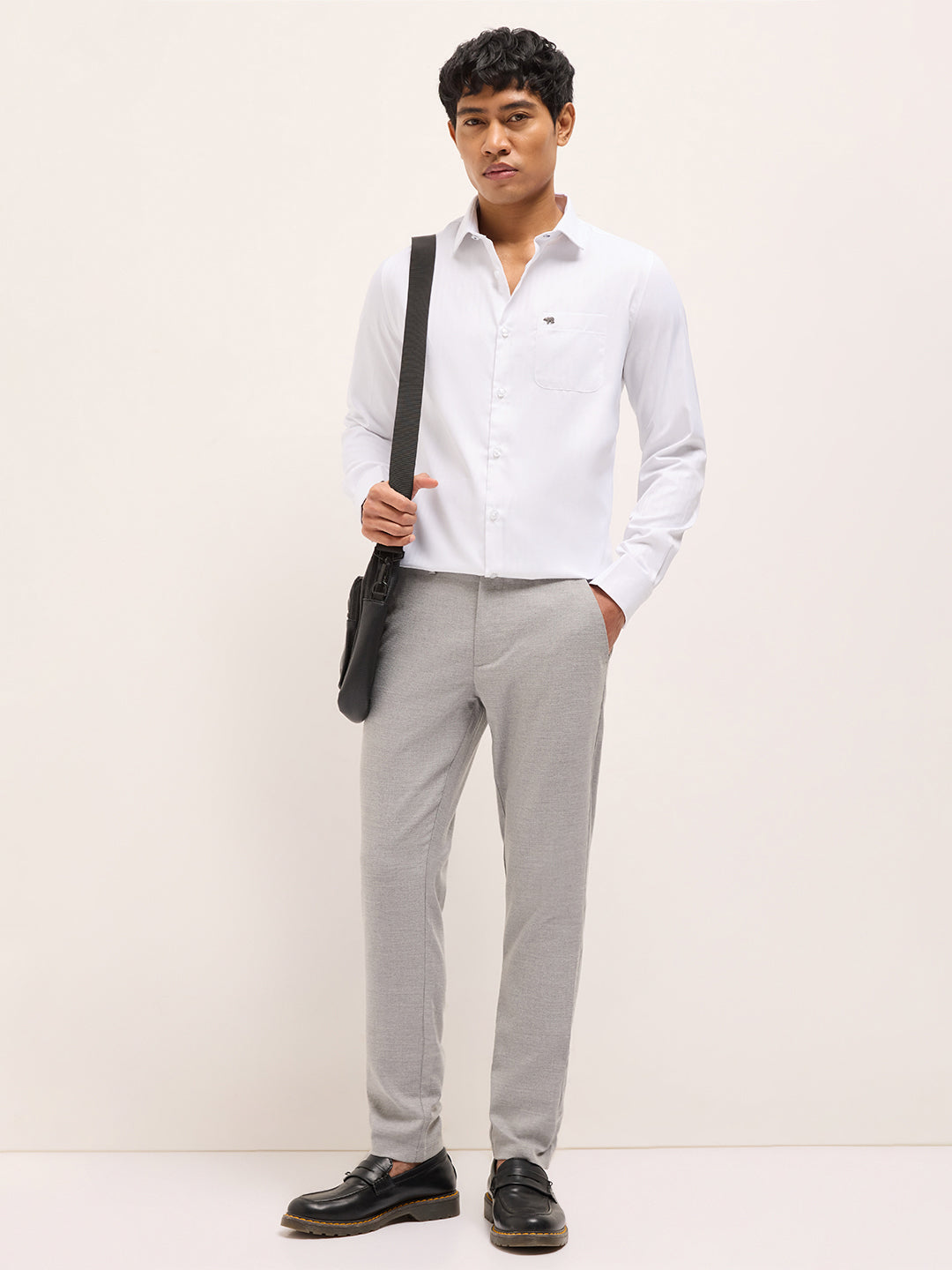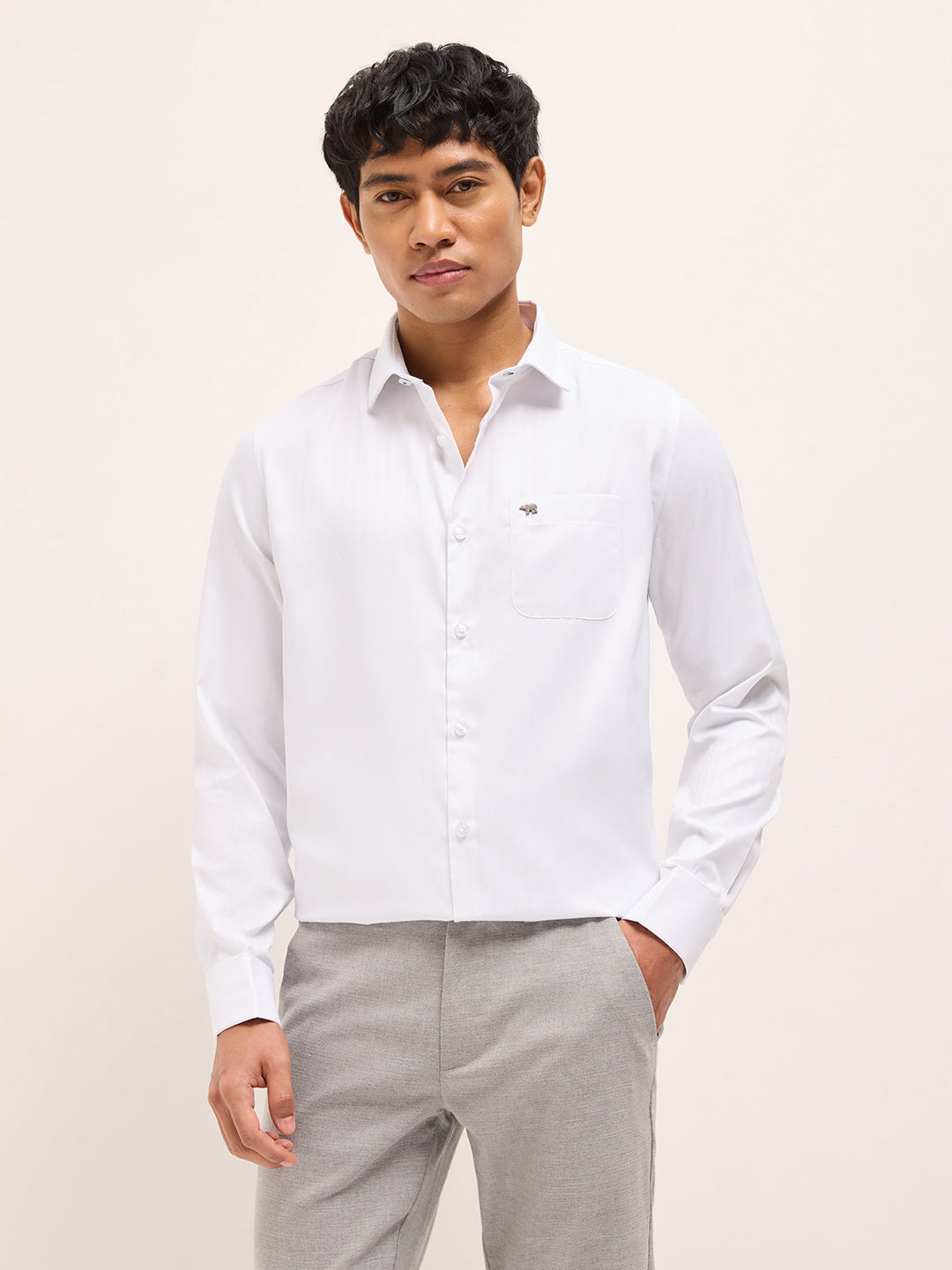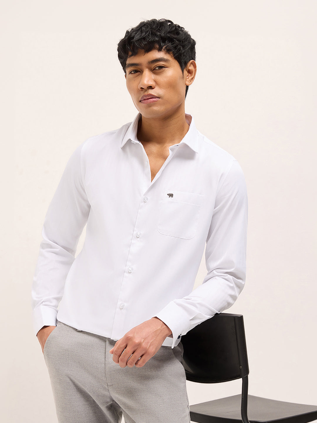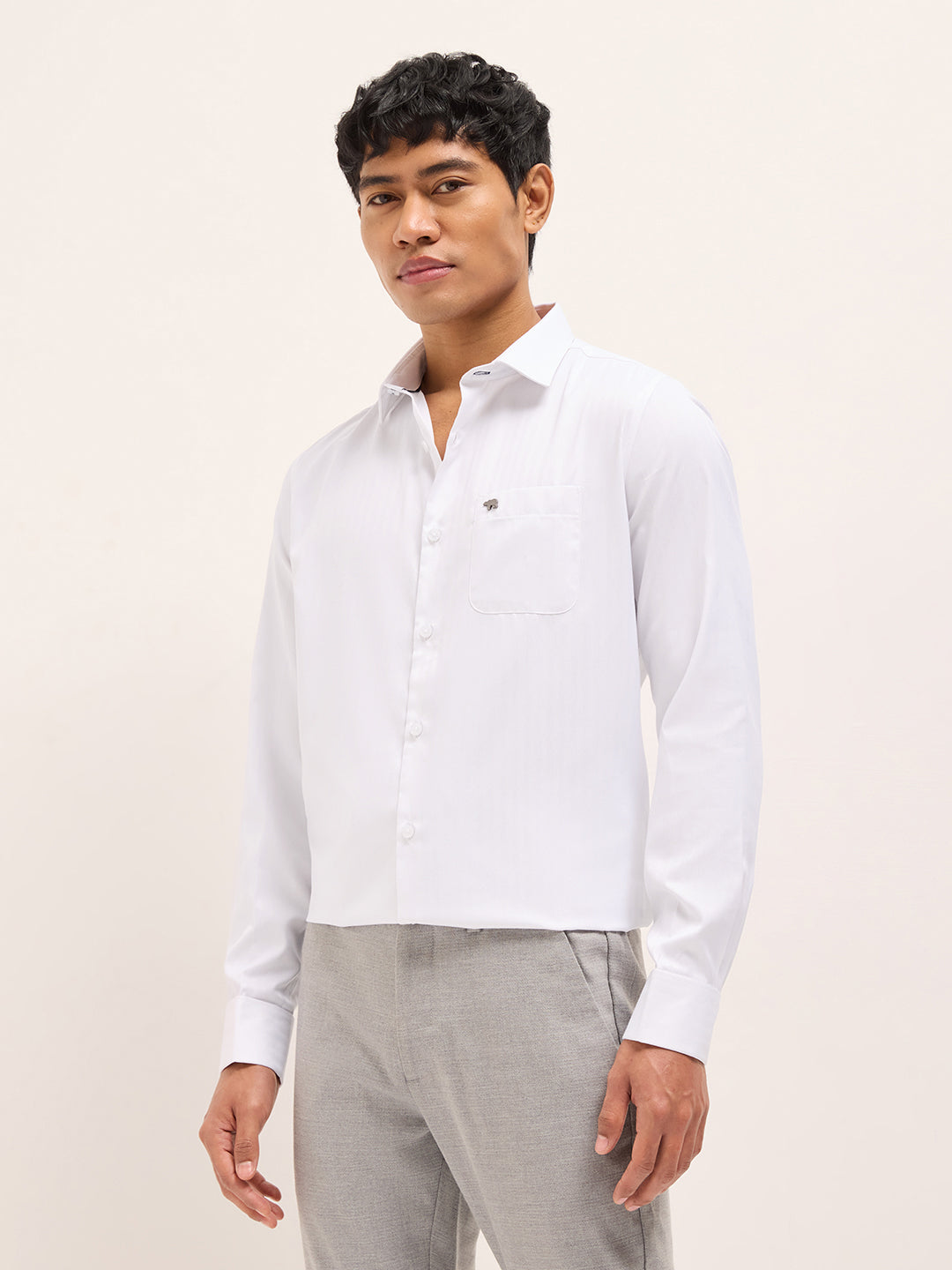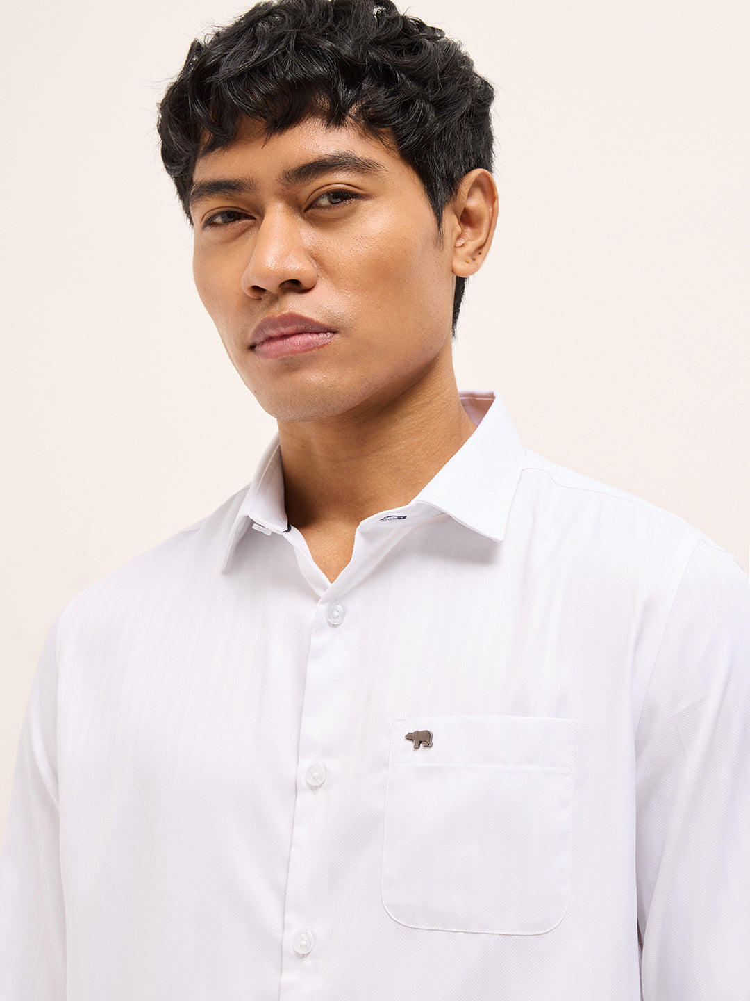 White Herringbone Woven Tailored Fit Formal Shirt with French Cuffs