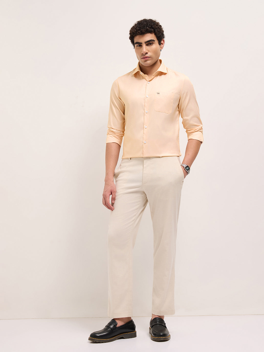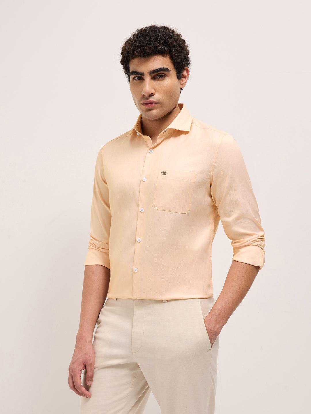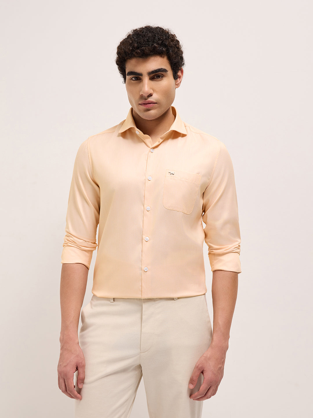 Shop Peach Herringbone Woven Tailored Fit Formal Shirt Online