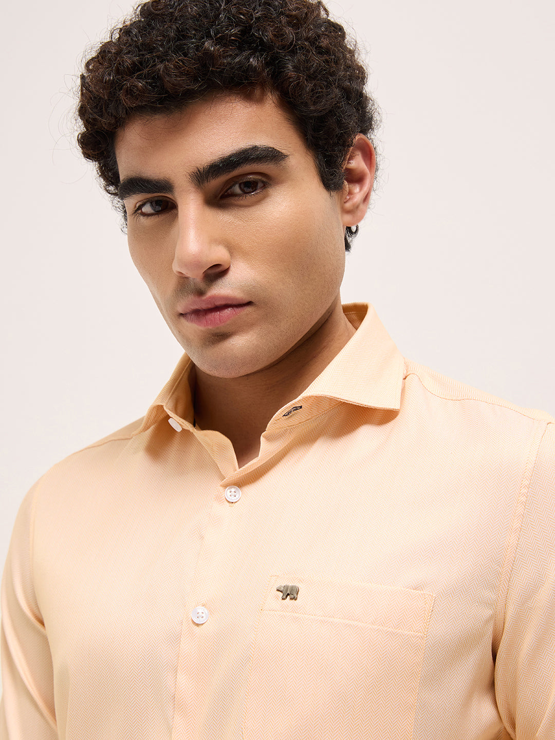 Peach Herringbone Woven Tailored Fit Formal Shirt