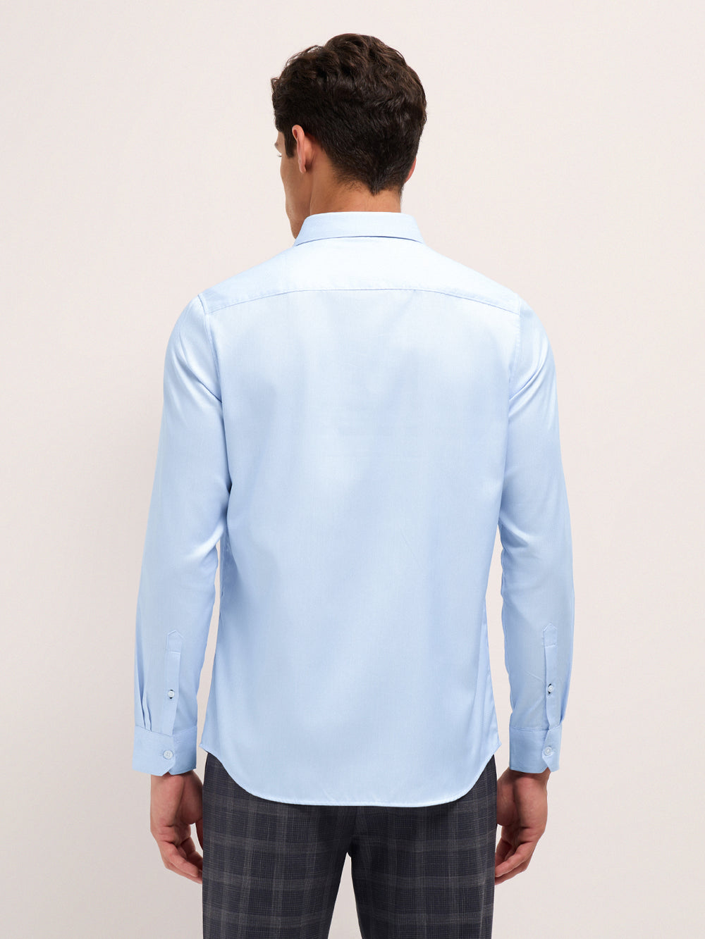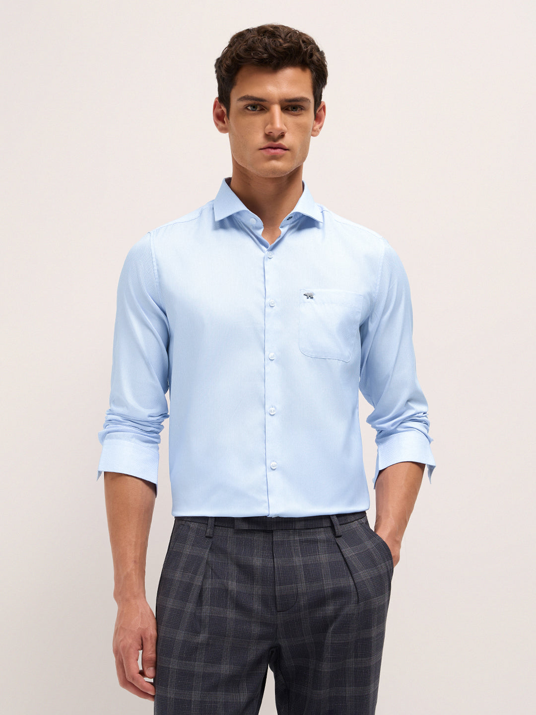 Shop Blue Herringbone Woven Tailored Fit Formal Shirt Online