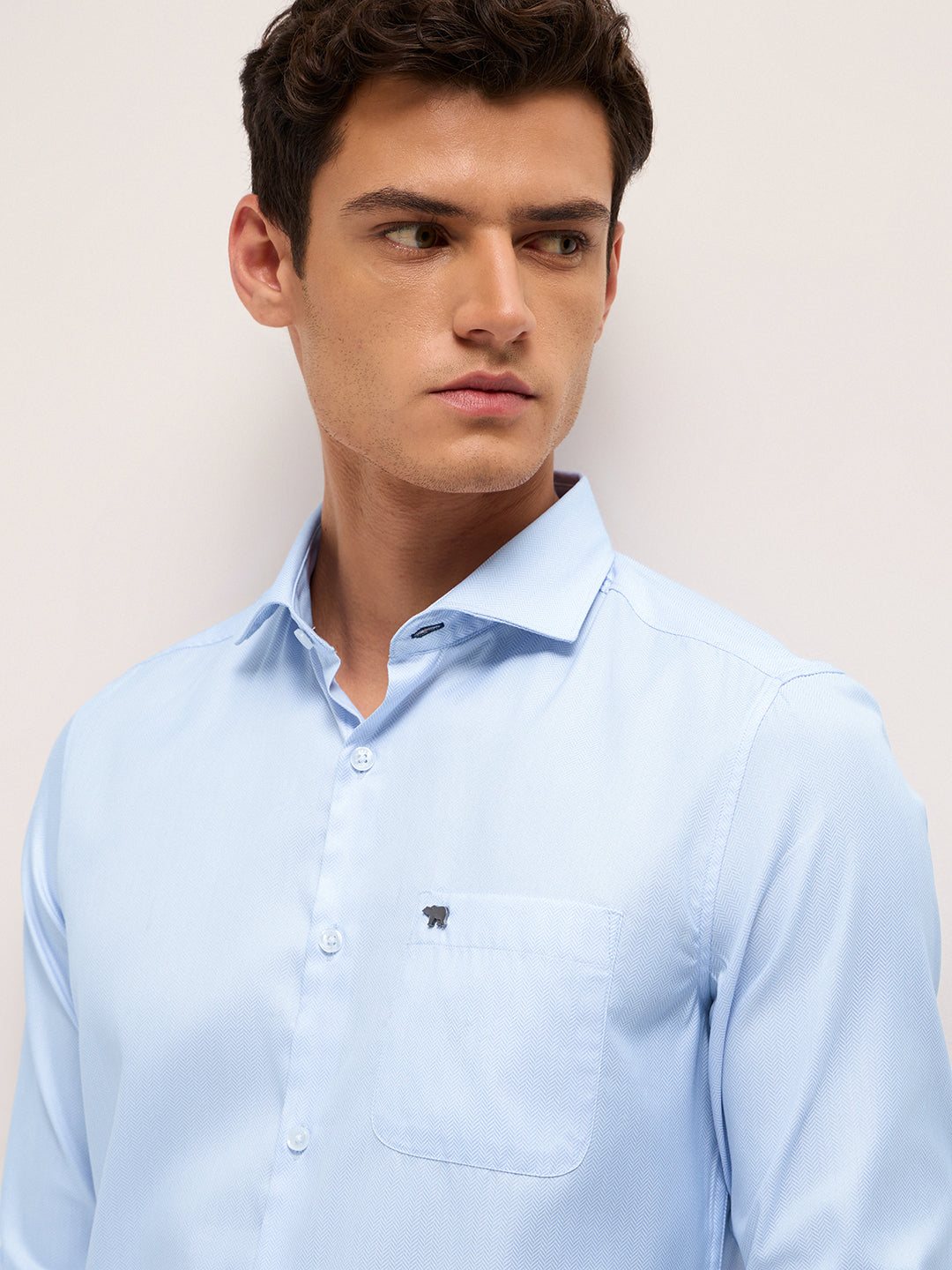 Blue Herringbone Woven Tailored Fit Formal Shirt