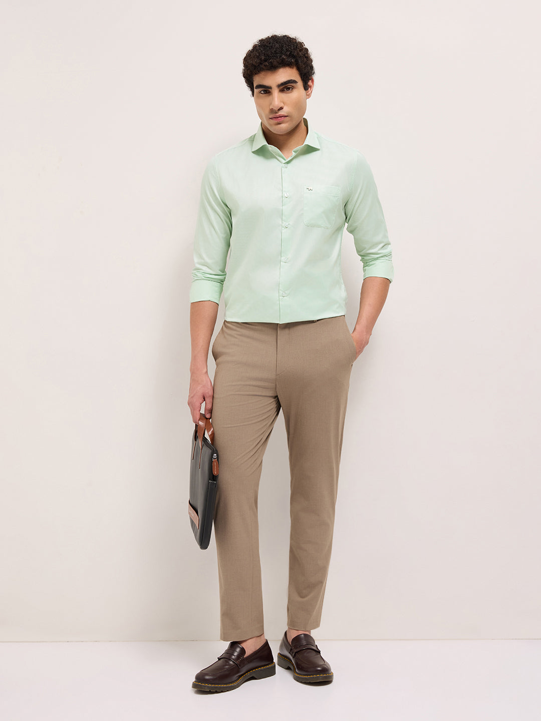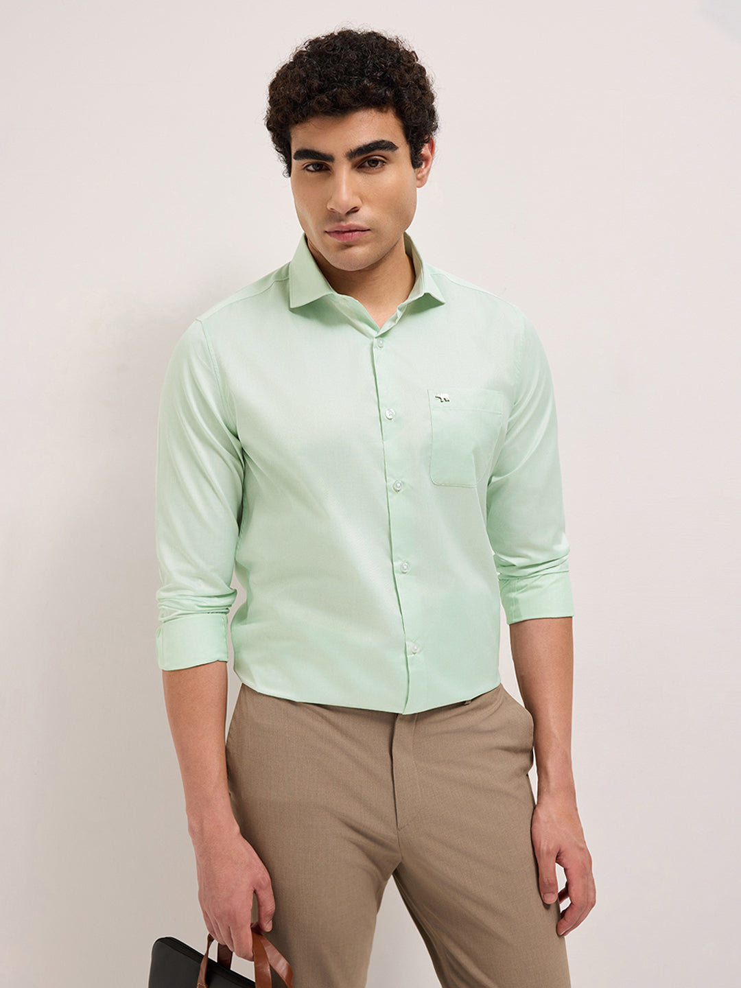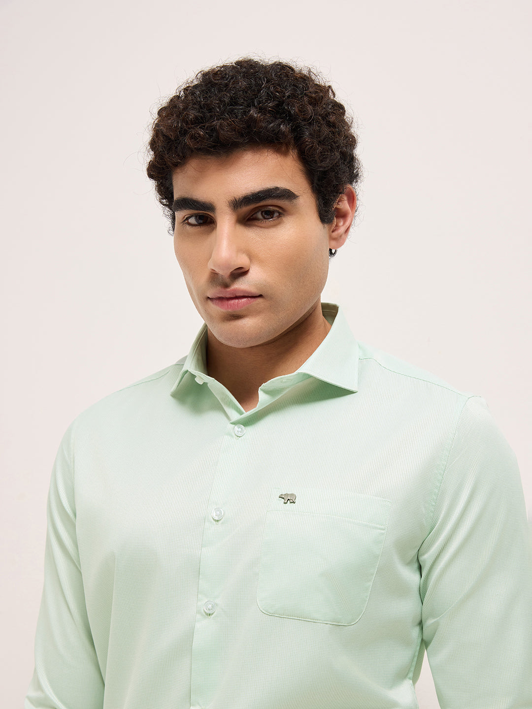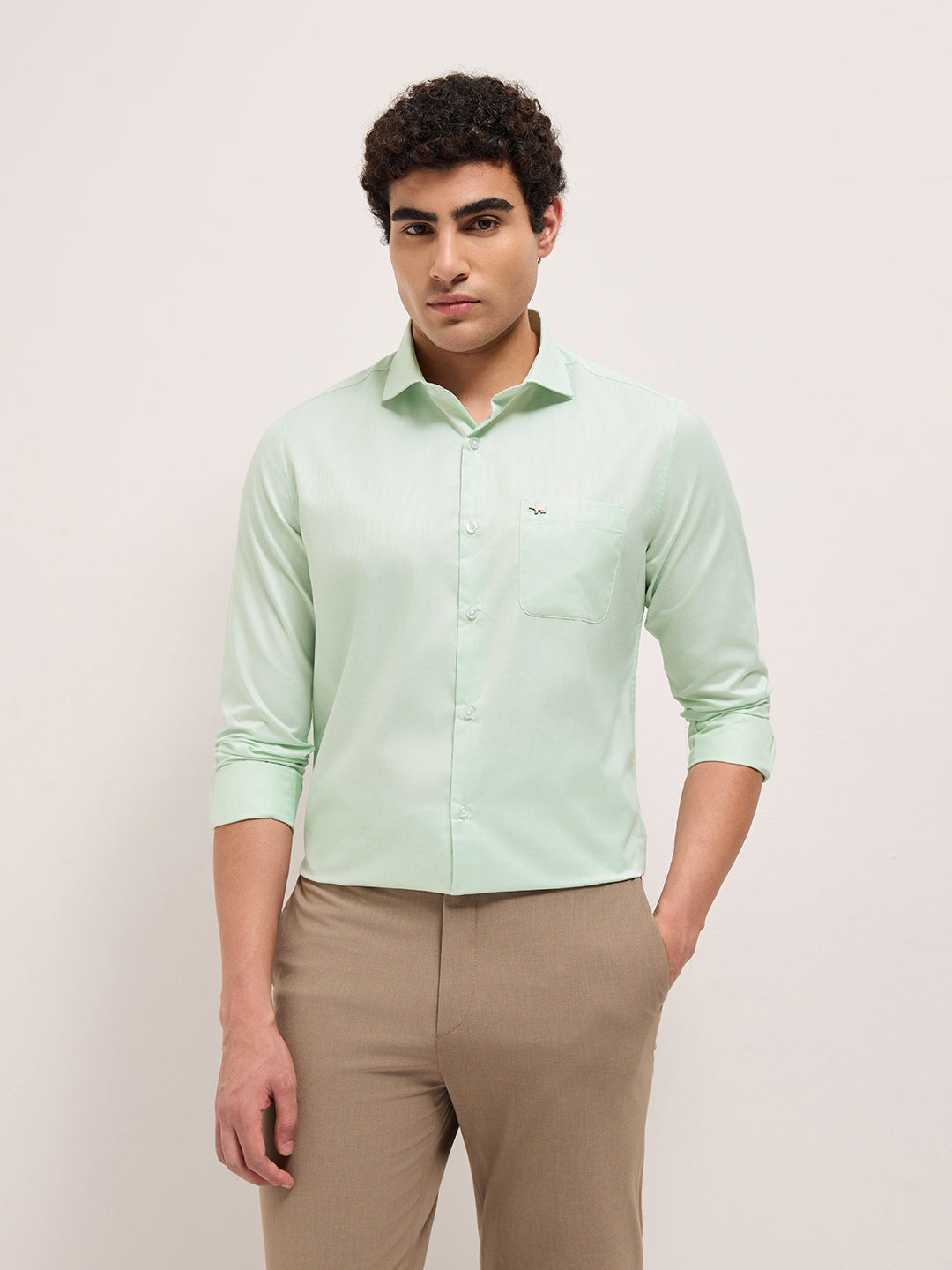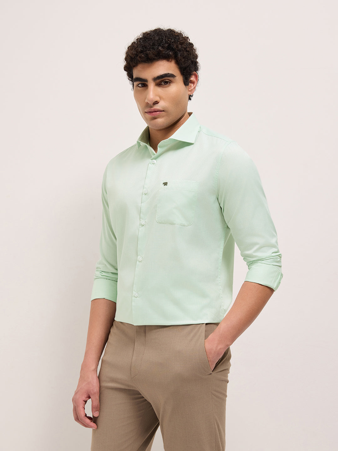 Shop Light Green Woven Design Tailored Fit Formal Shirt Online