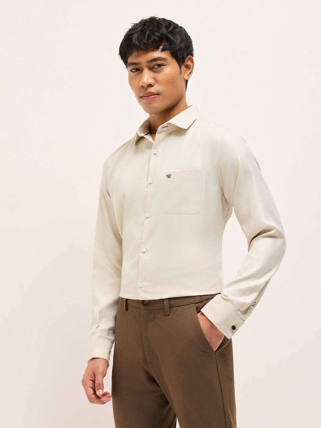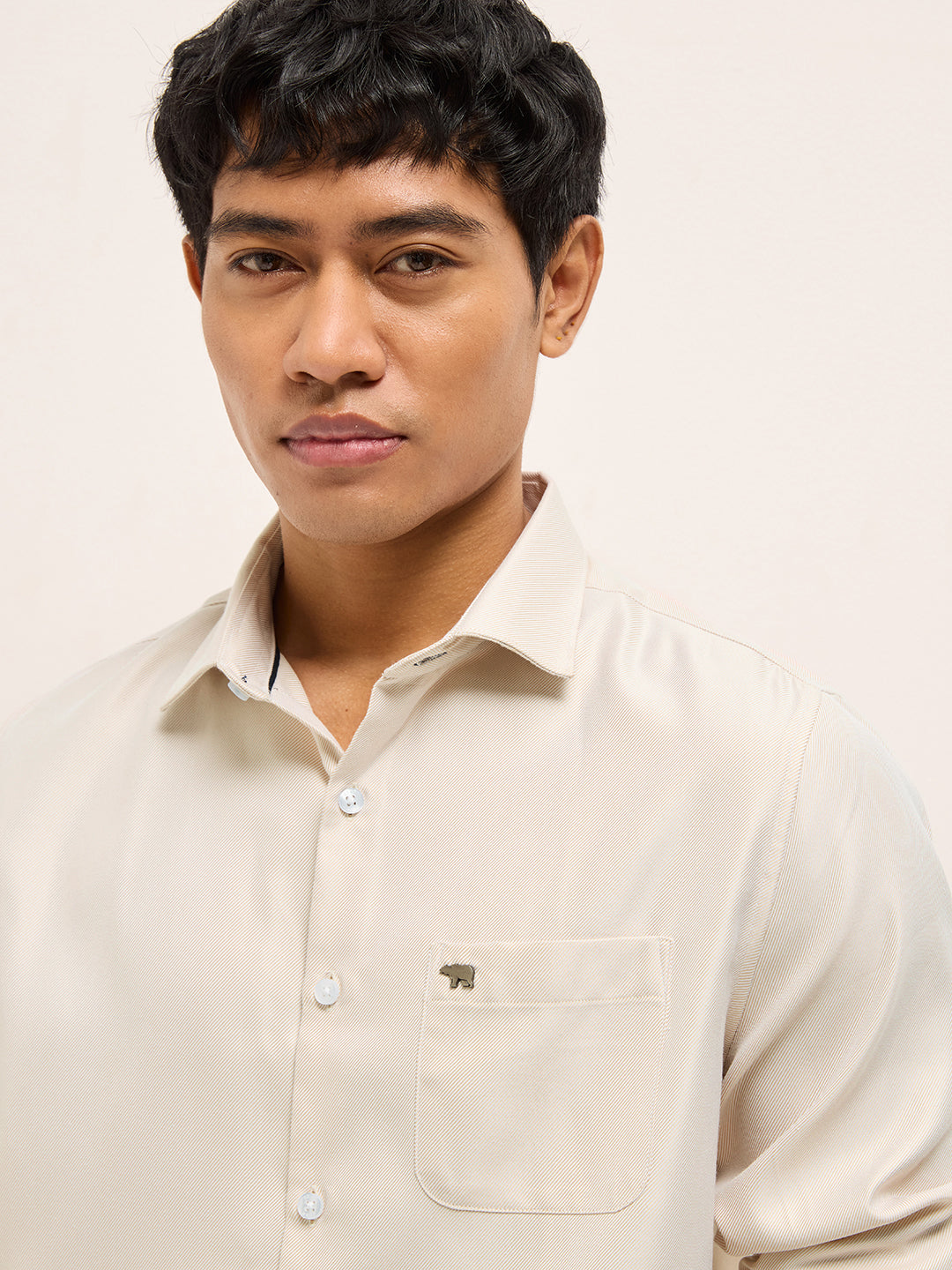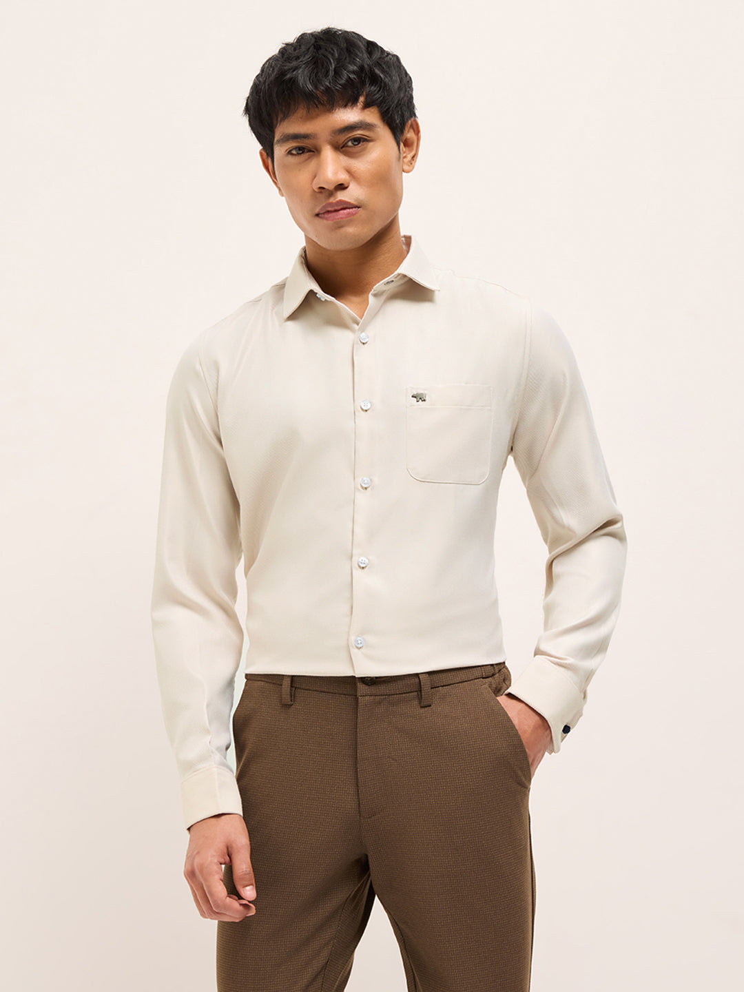 Shop Beige Textured Woven Tailored Fit Formal Shirt Online