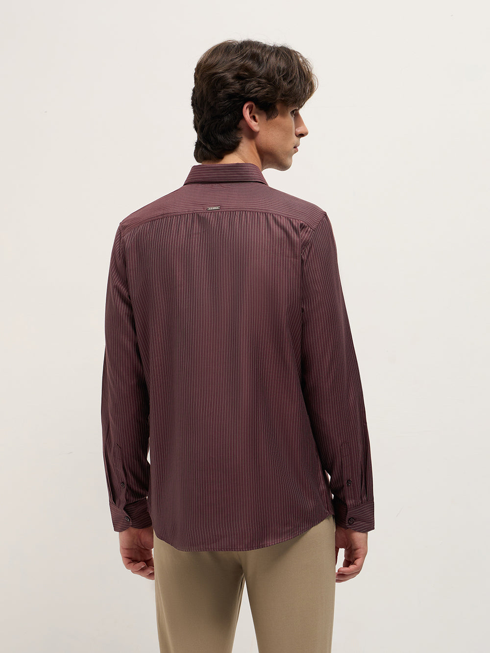 Maroon Woven Pin Stripe Design Tailored Fit Formal Shirt
