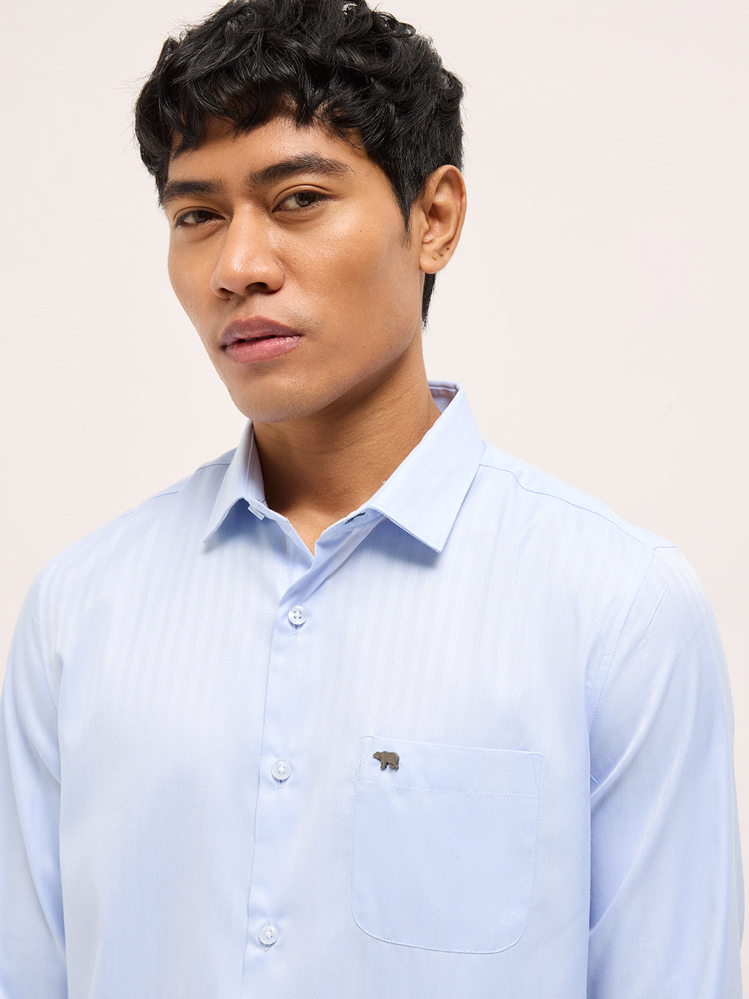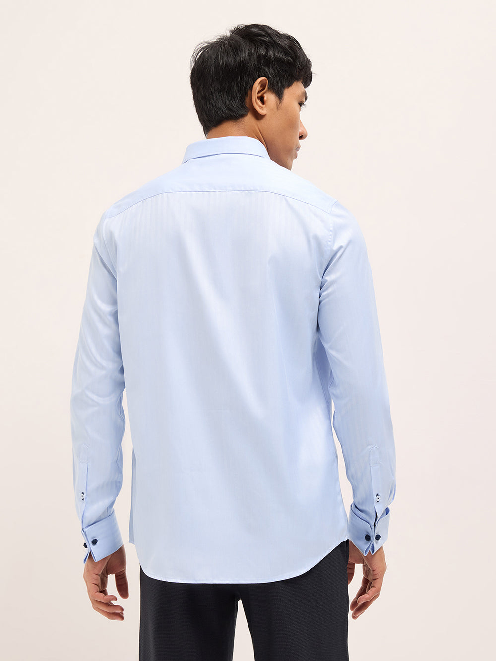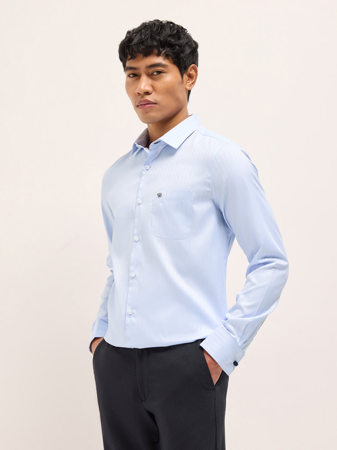 Shop Blue Herringbone Striped Tailored Fit Formal Shirt with French Cuffs Online