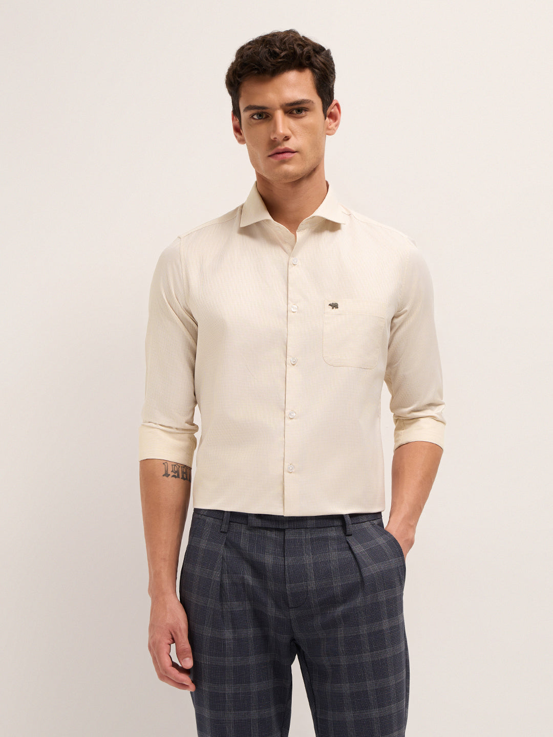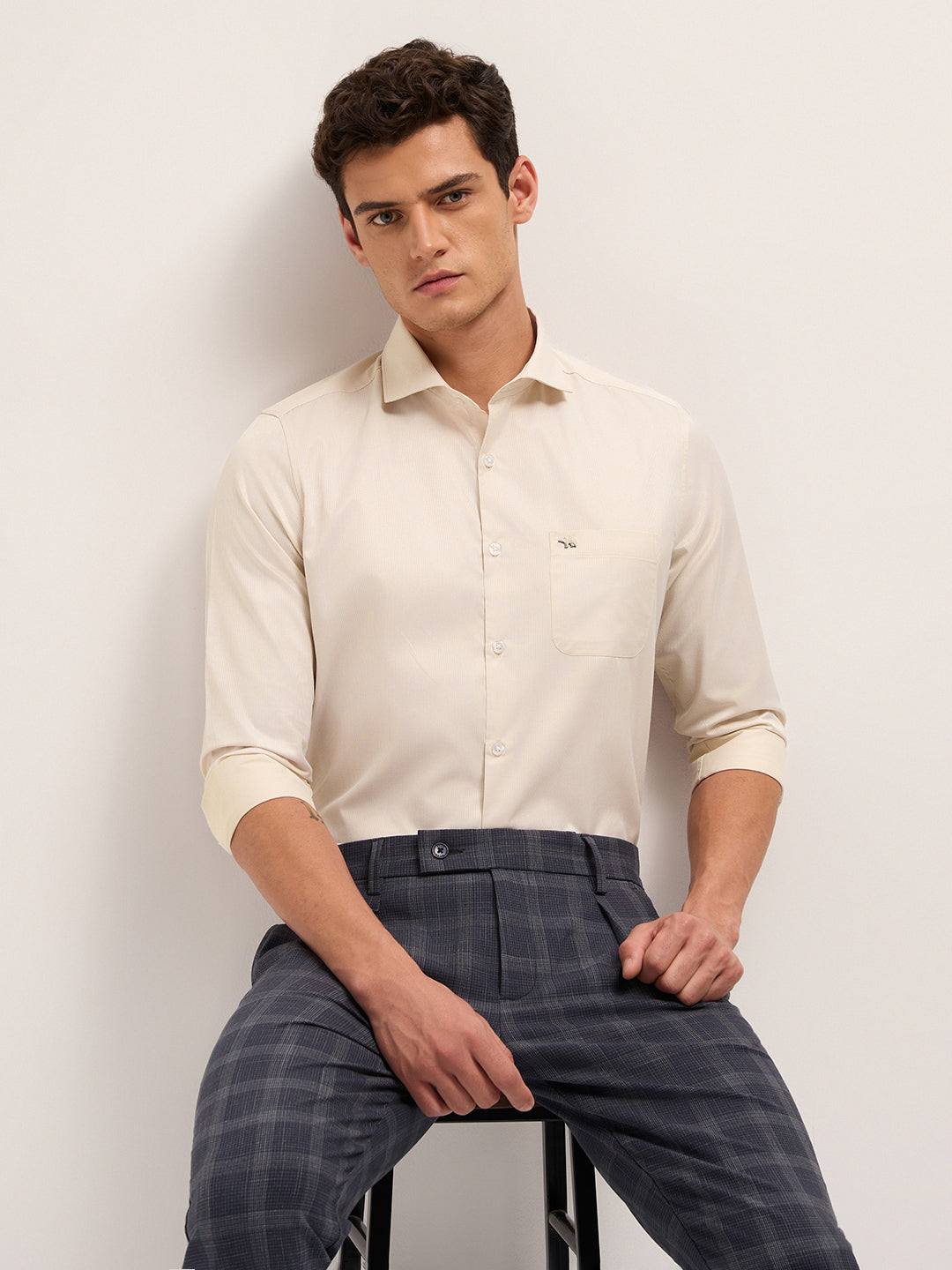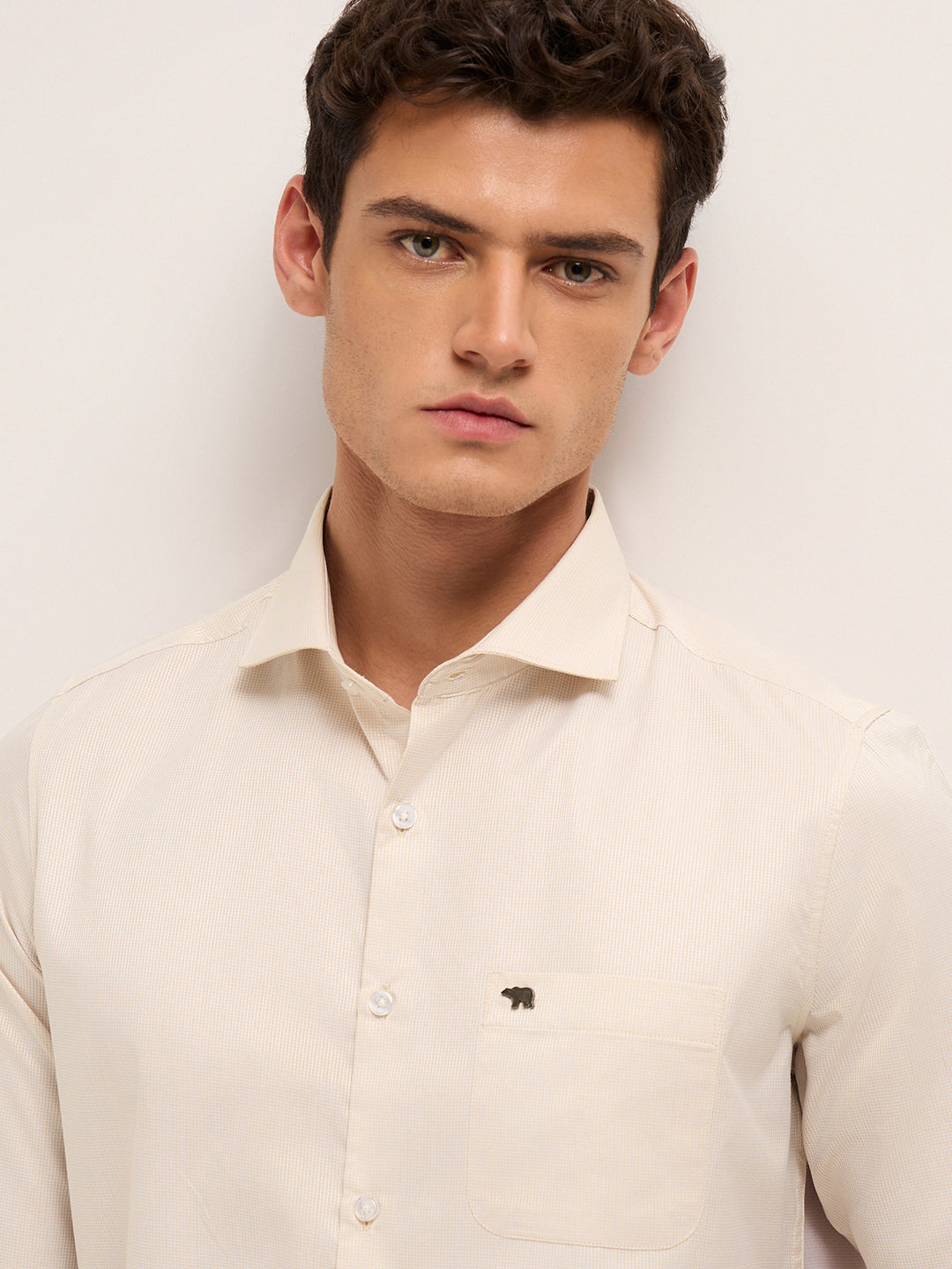 Shop Beige Woven Design Tailored Fit Formal Shirt Online
