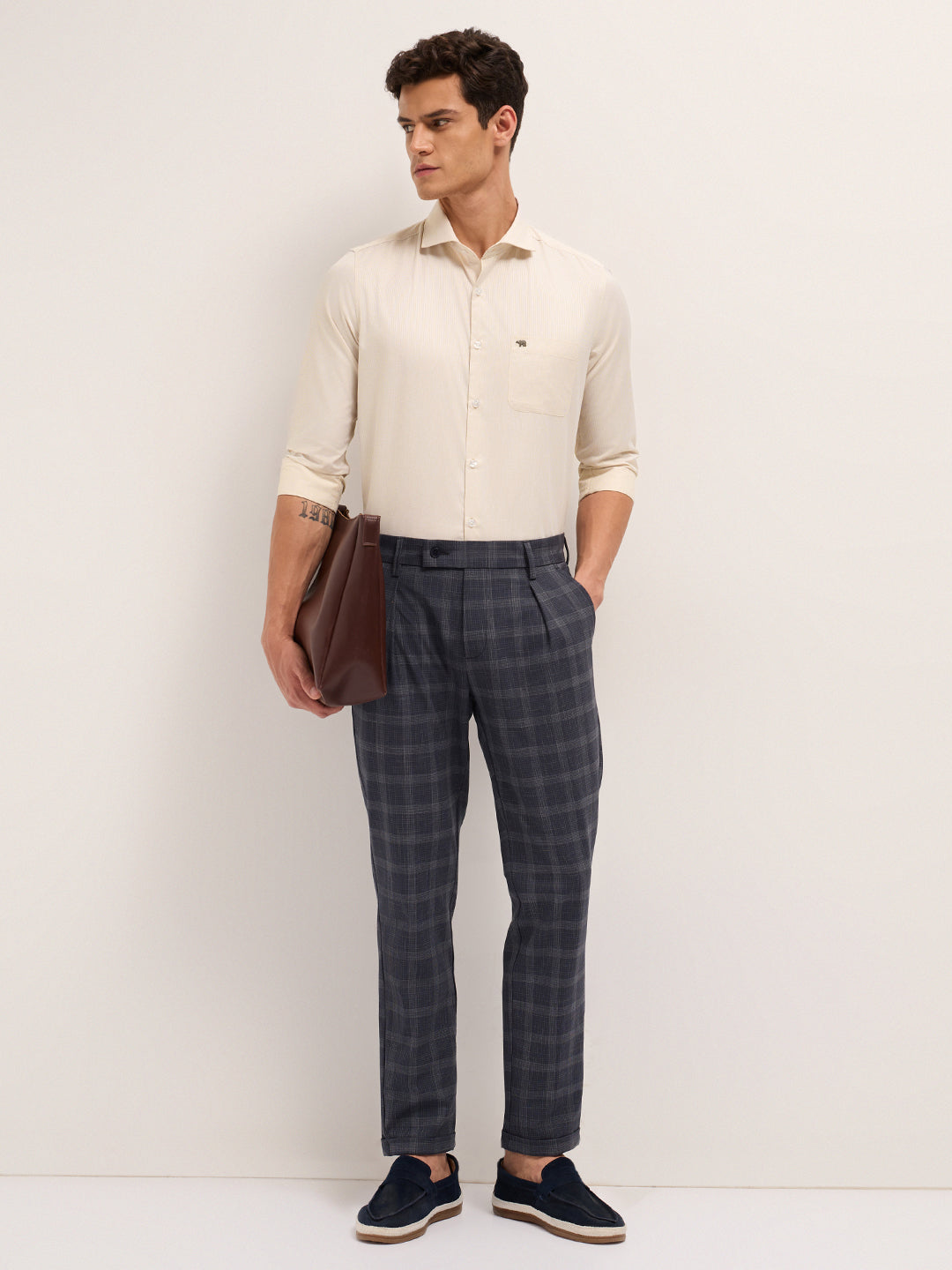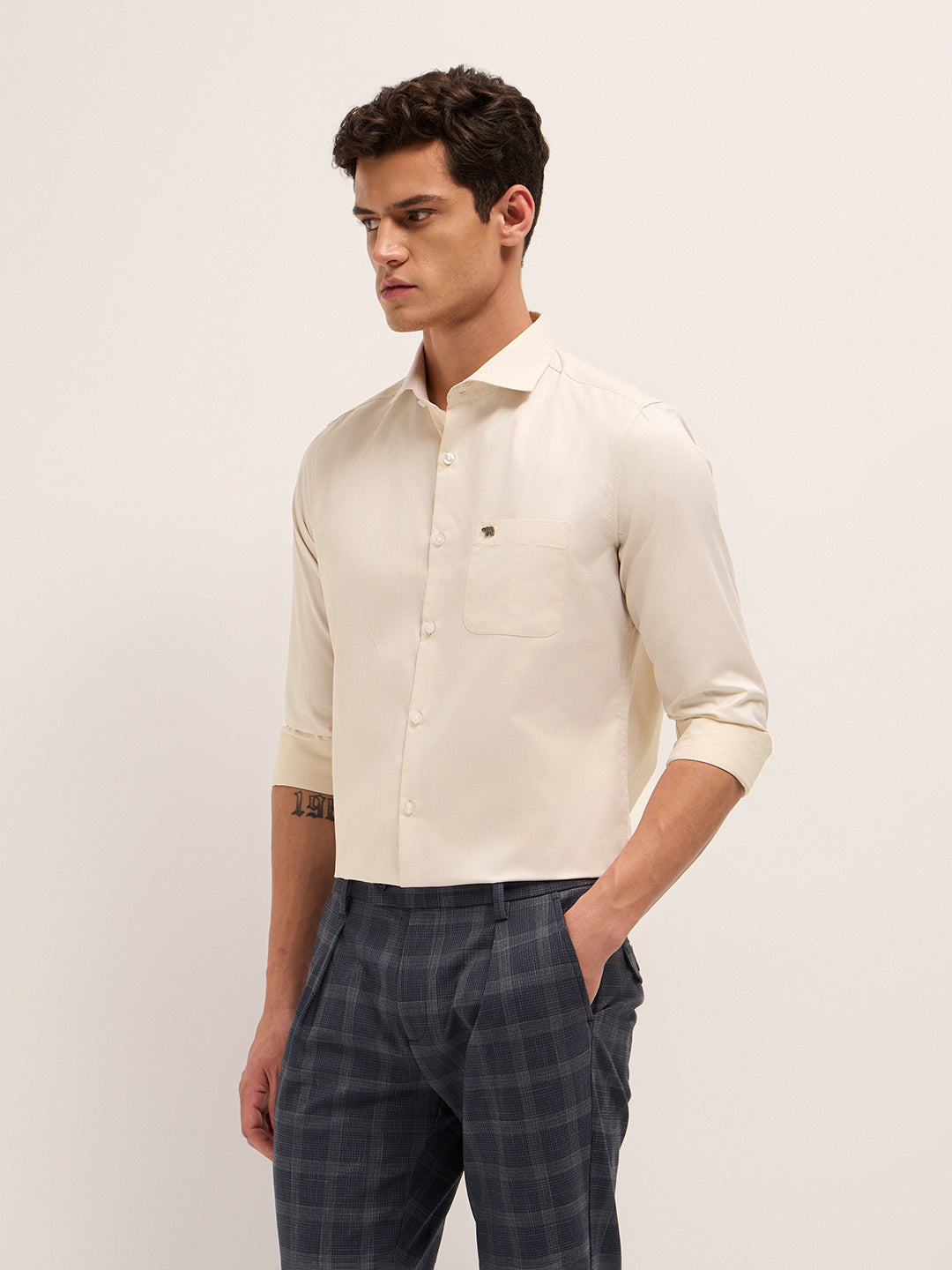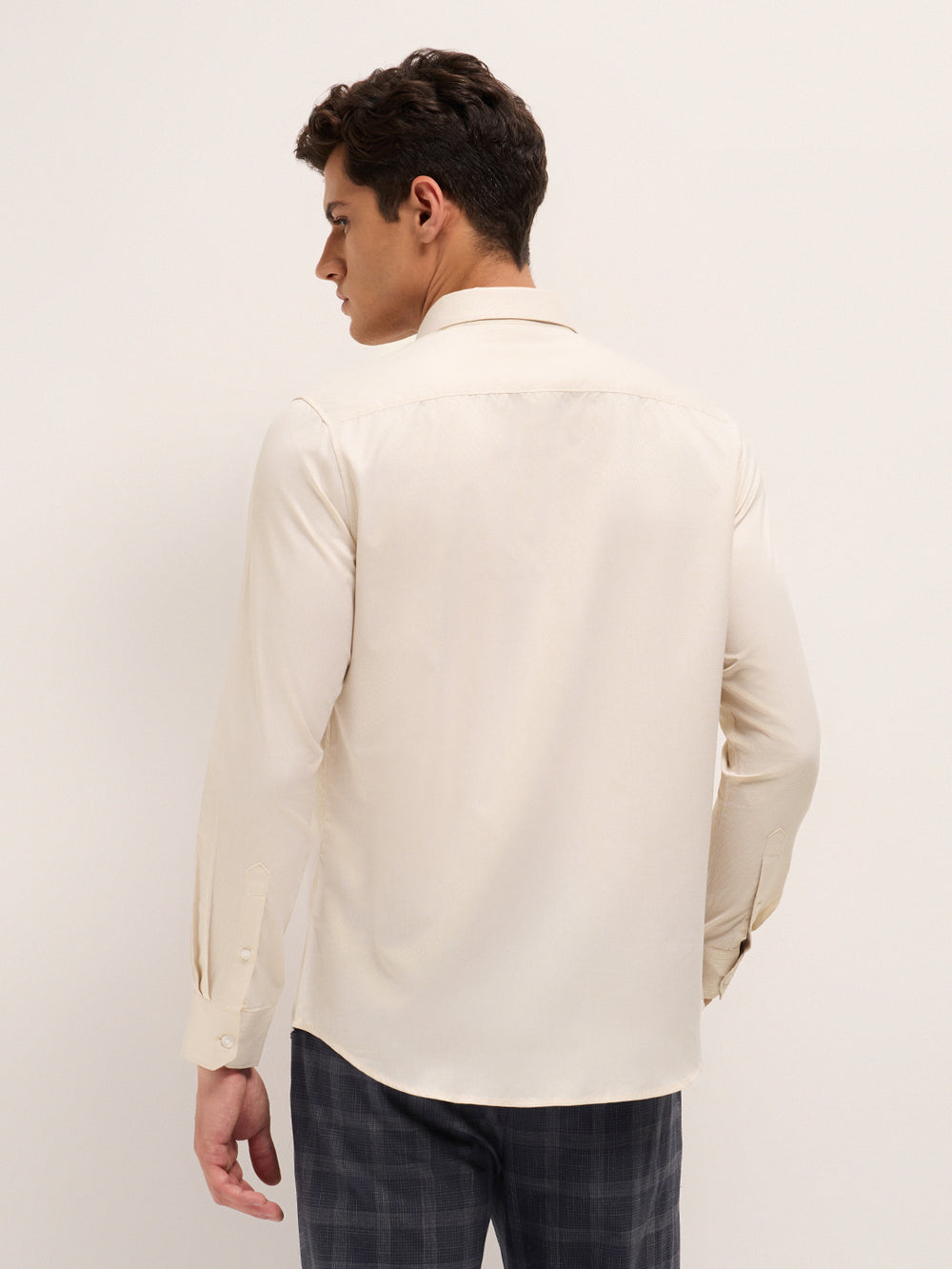 Shop Beige Woven Design Tailored Fit Formal Shirt Online