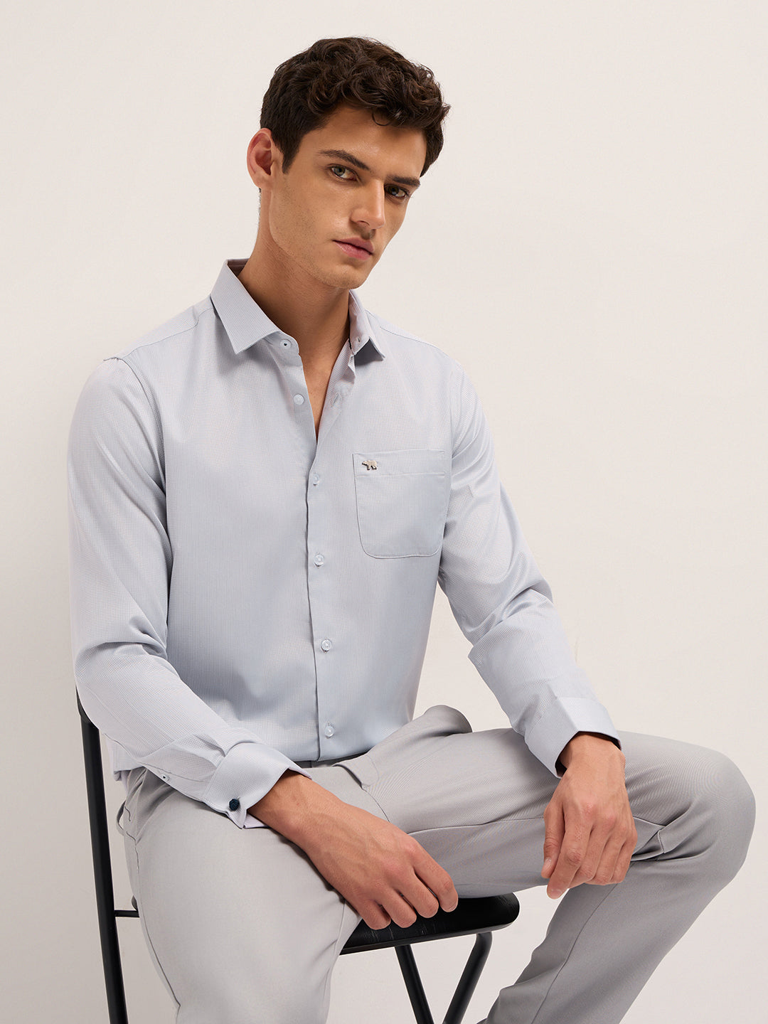 Shop Grey Woven Micro Checks Tailored Fit Formal Shirt Online