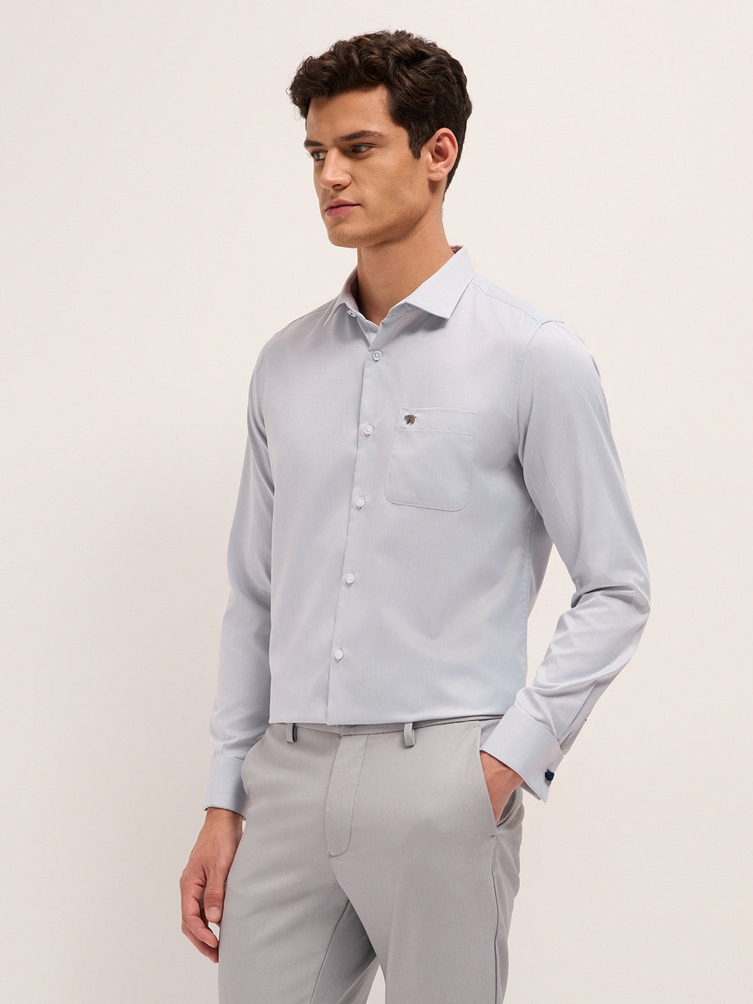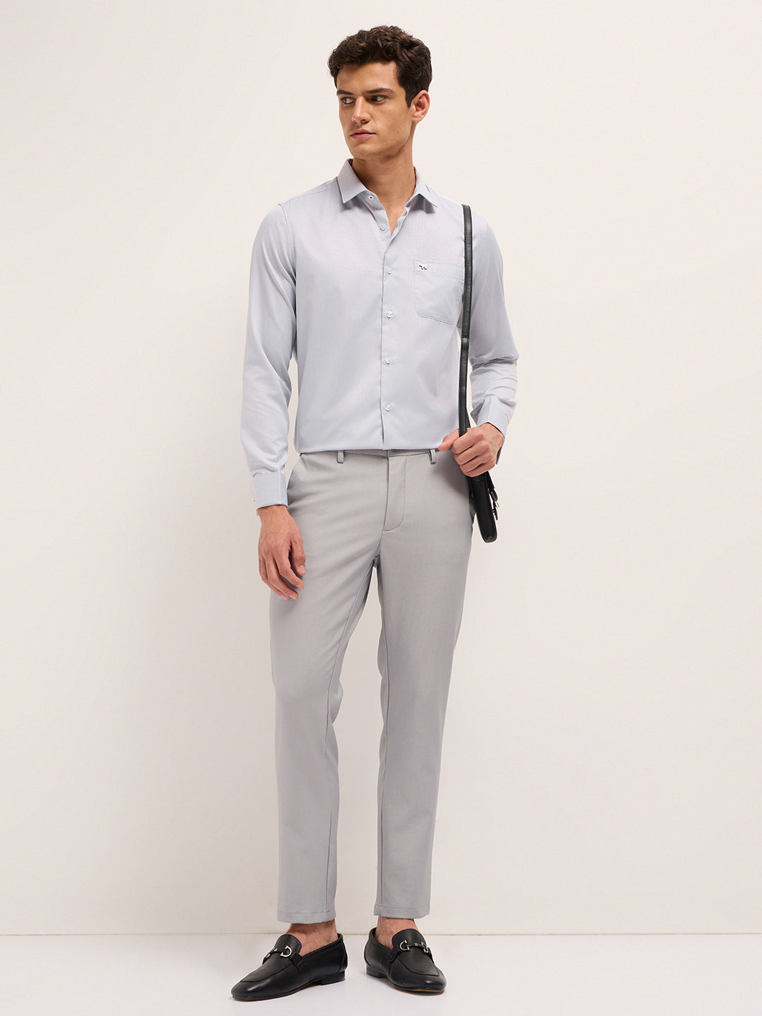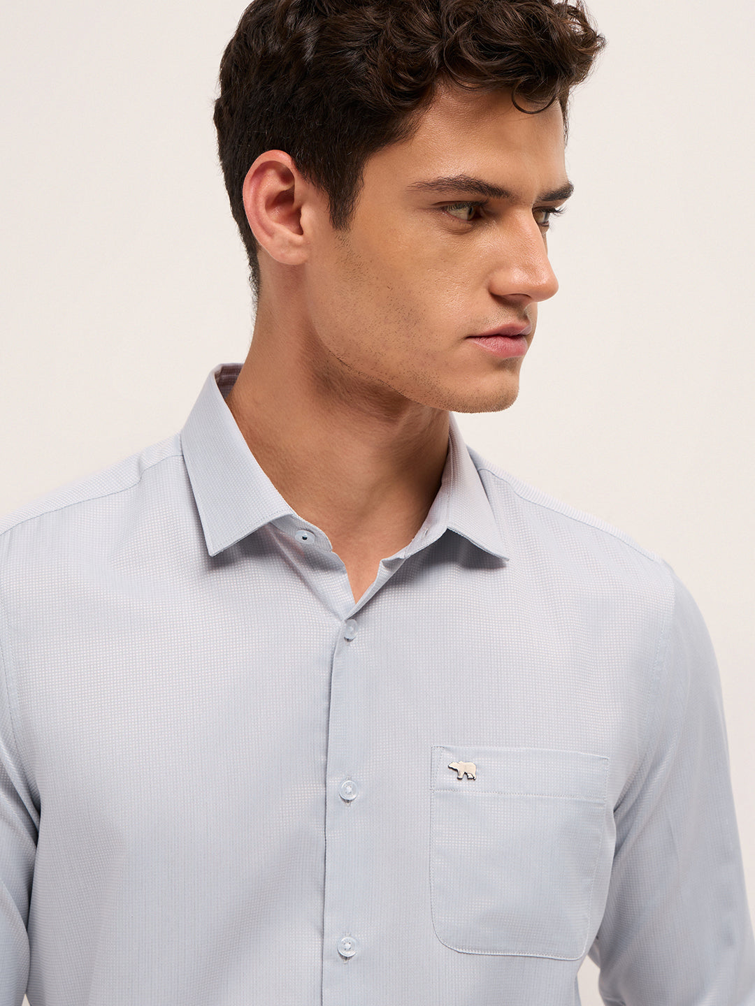 Grey Woven Micro Checks Tailored Fit Formal Shirt