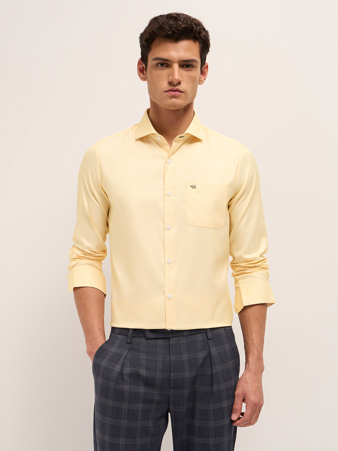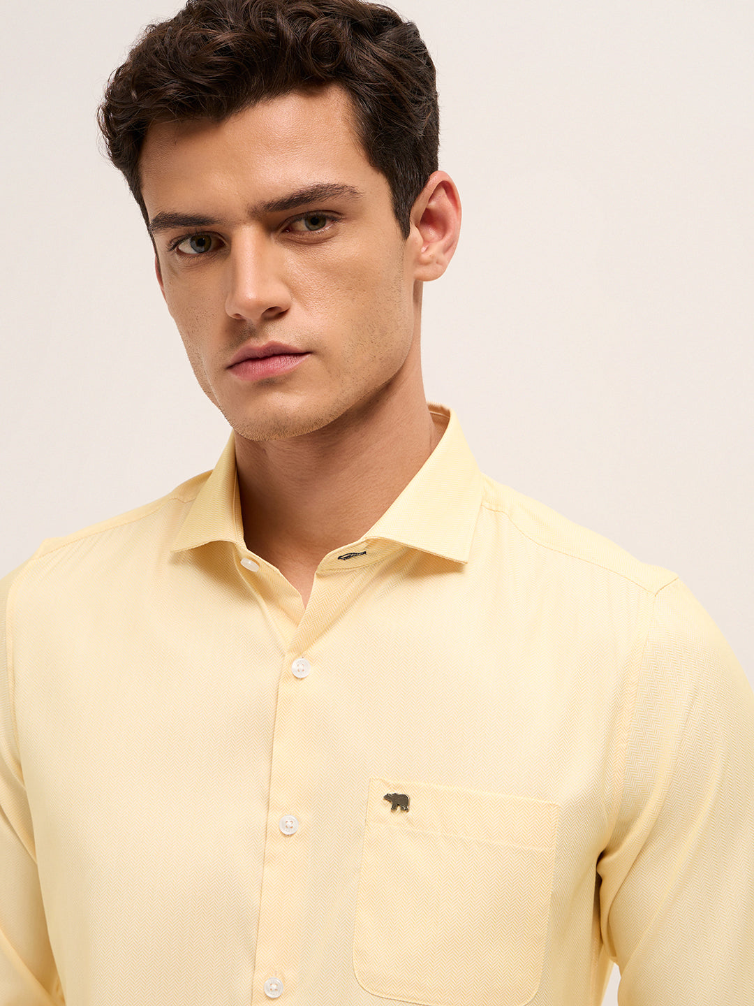 Yellow Herringbone Woven Tailored Fit Formal Shirt