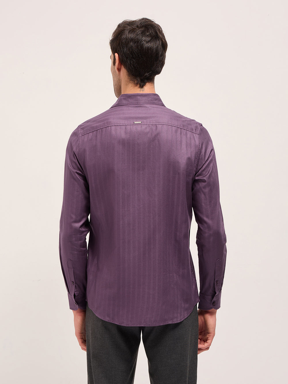 Purple Cotton Woven Stripes Design Tailored Fit Formal Shirt