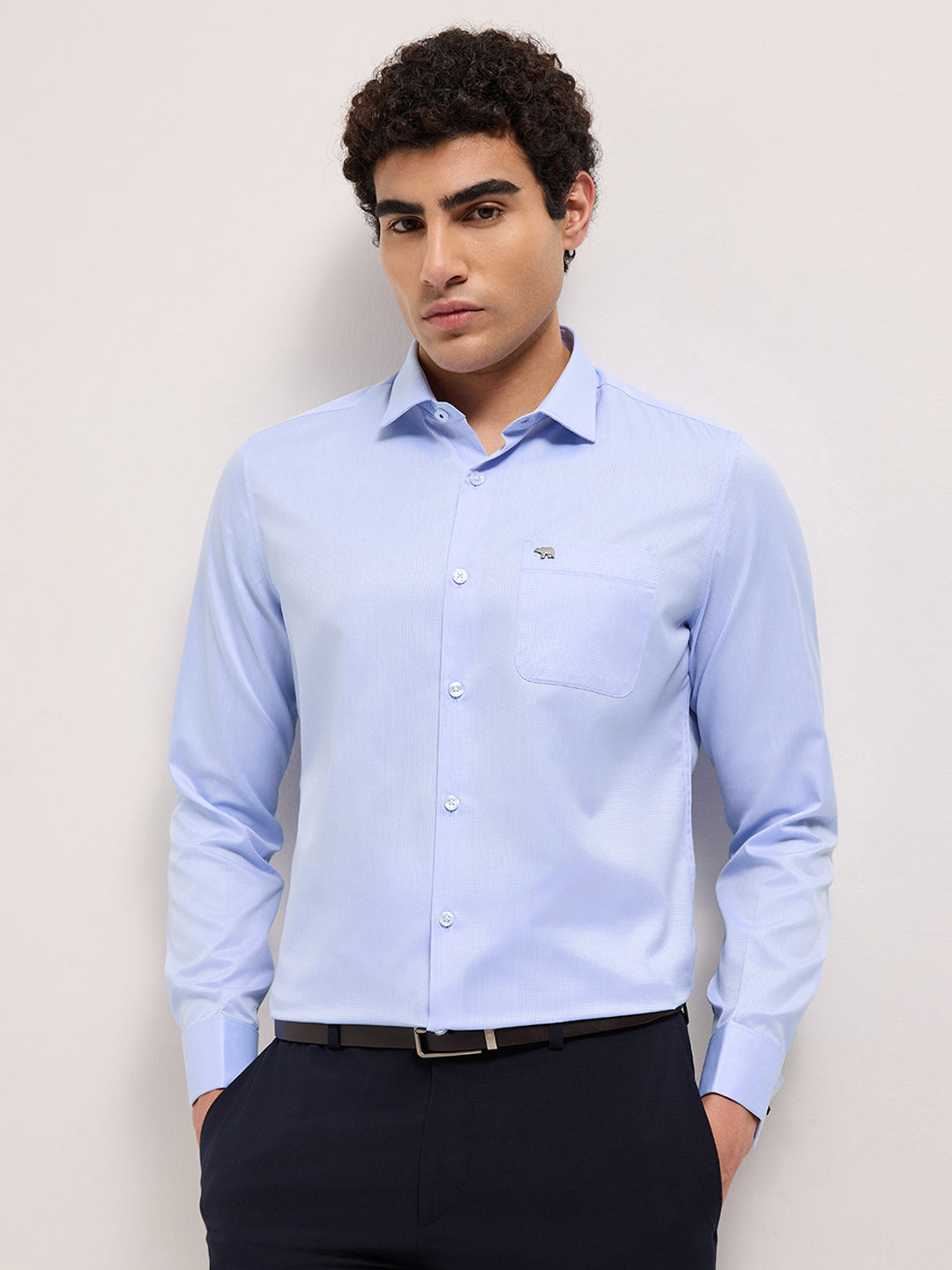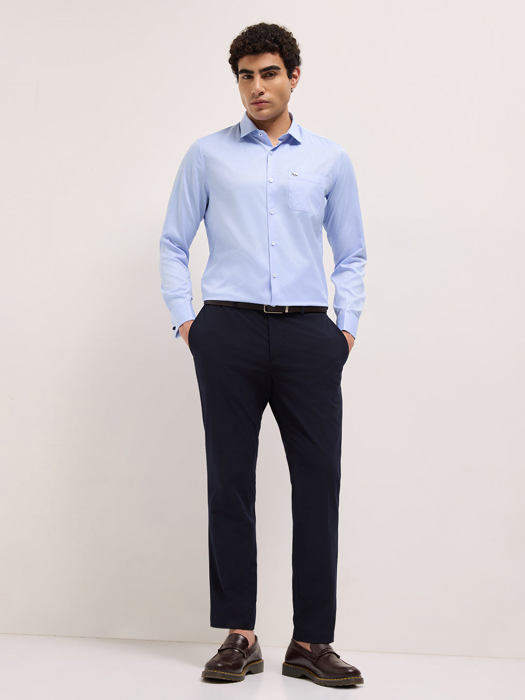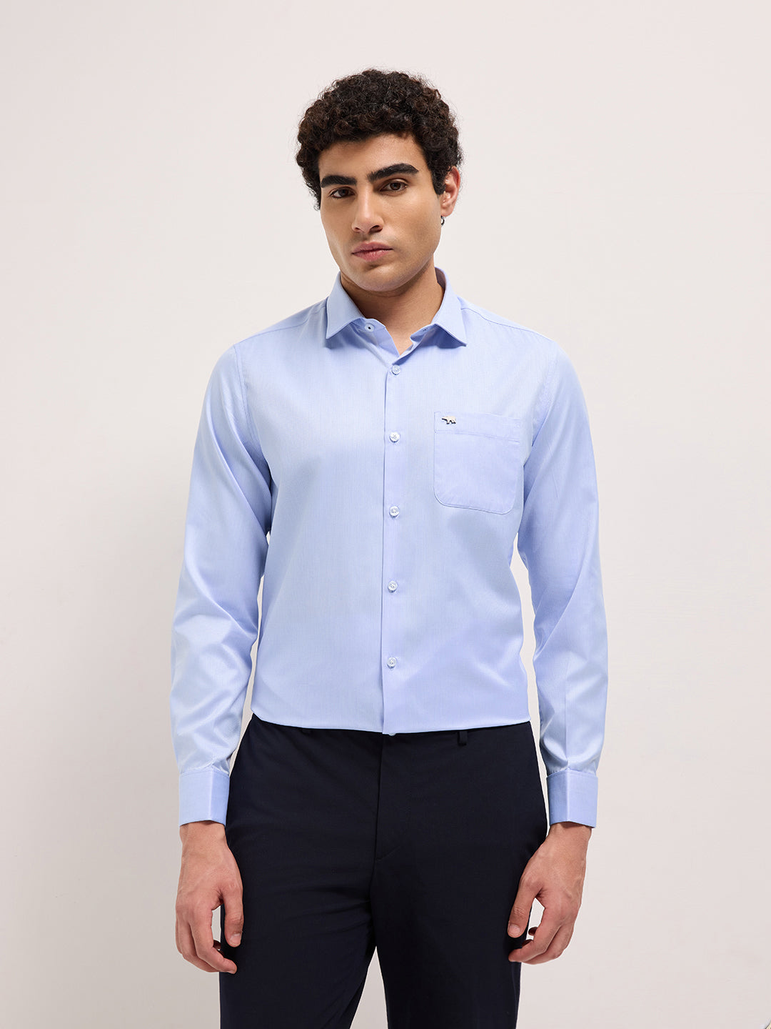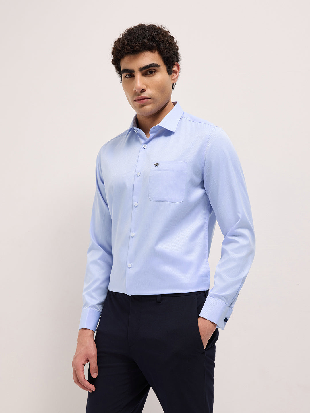 Shop Blue Woven Micro Check Tailored Fit Formal Shirt with French Cuffs Online