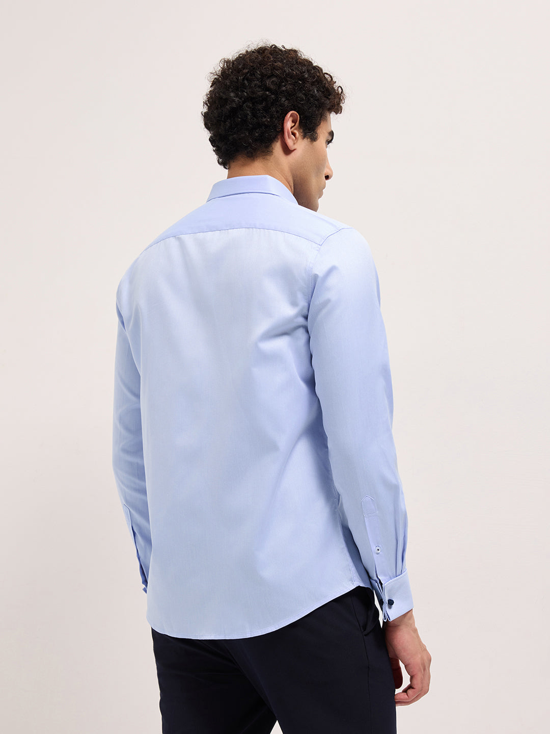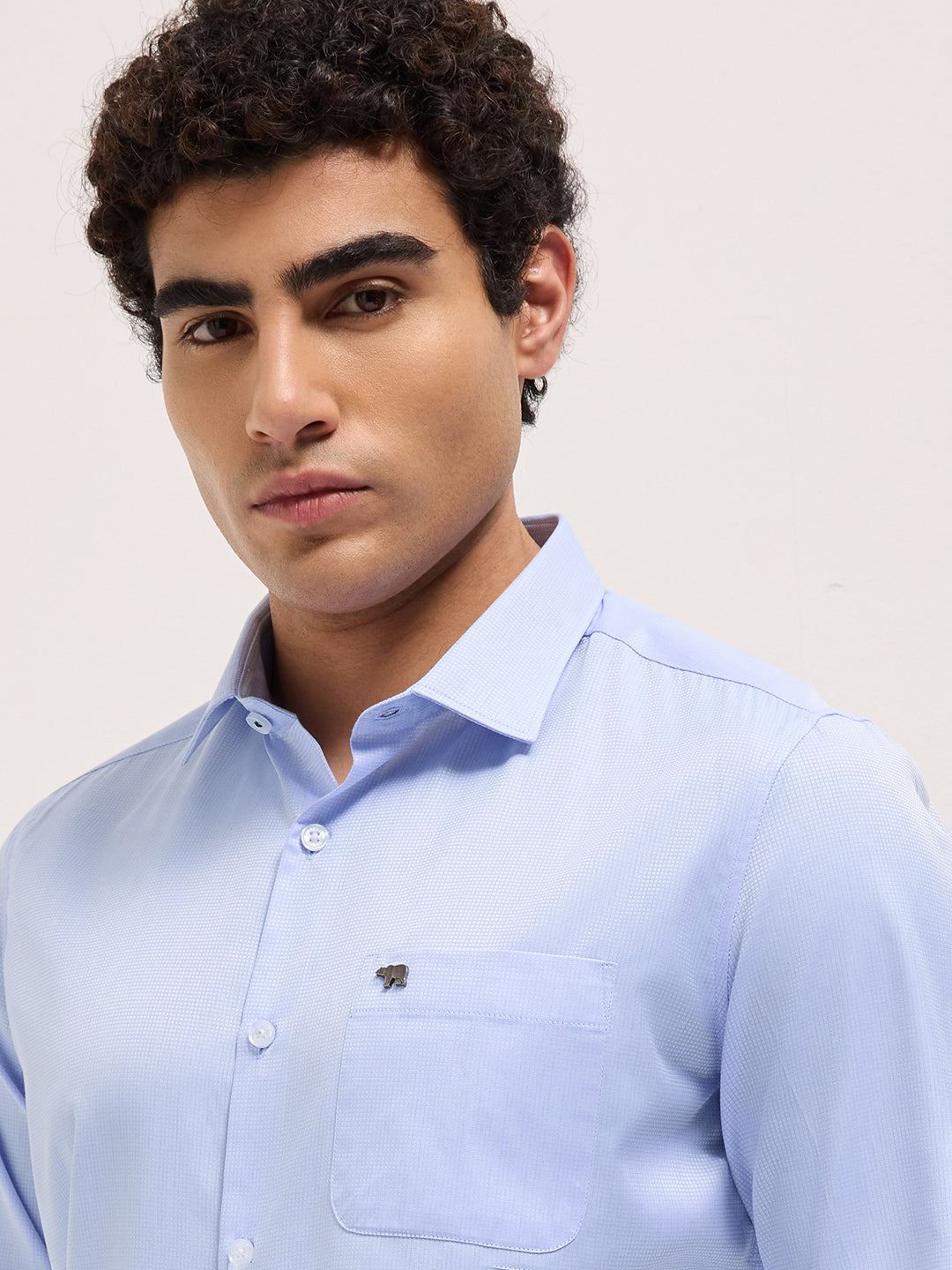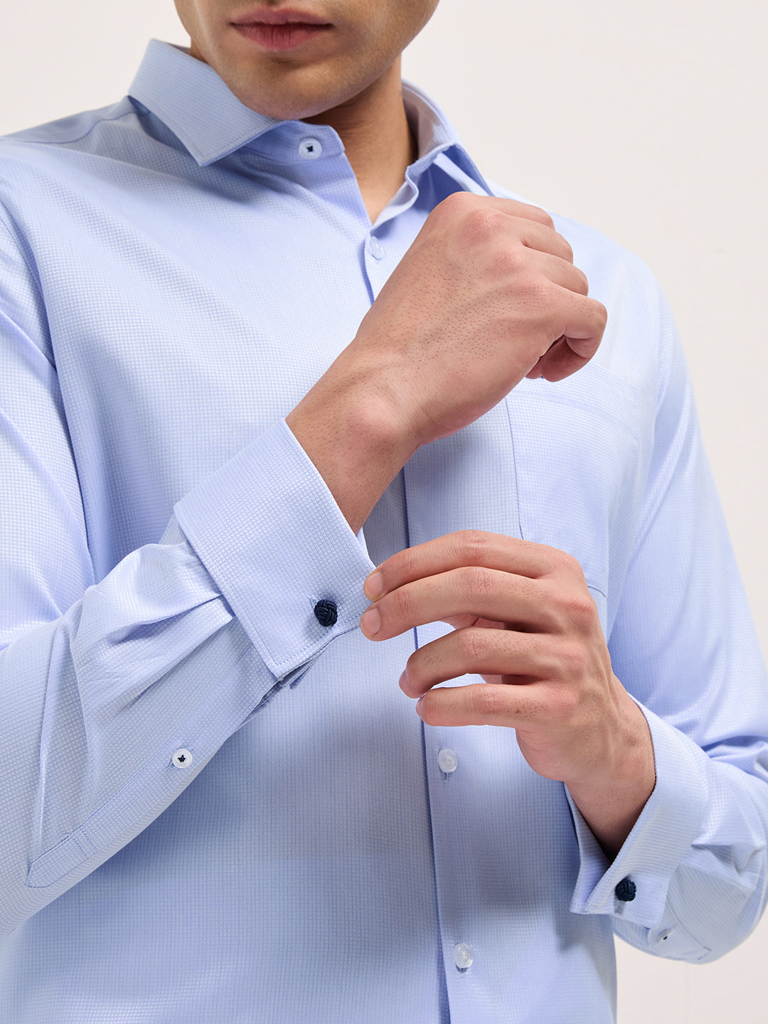 Blue Woven Micro Check Tailored Fit Formal Shirt with French Cuffs