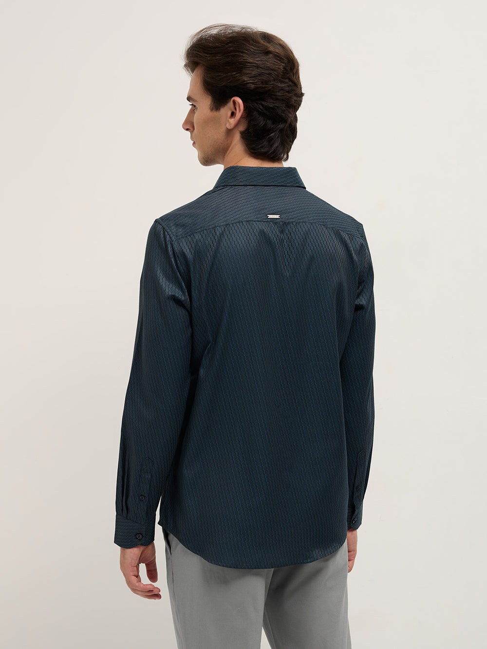 Shop Blue Woven Design Tailored Fit Formal Shirt Online