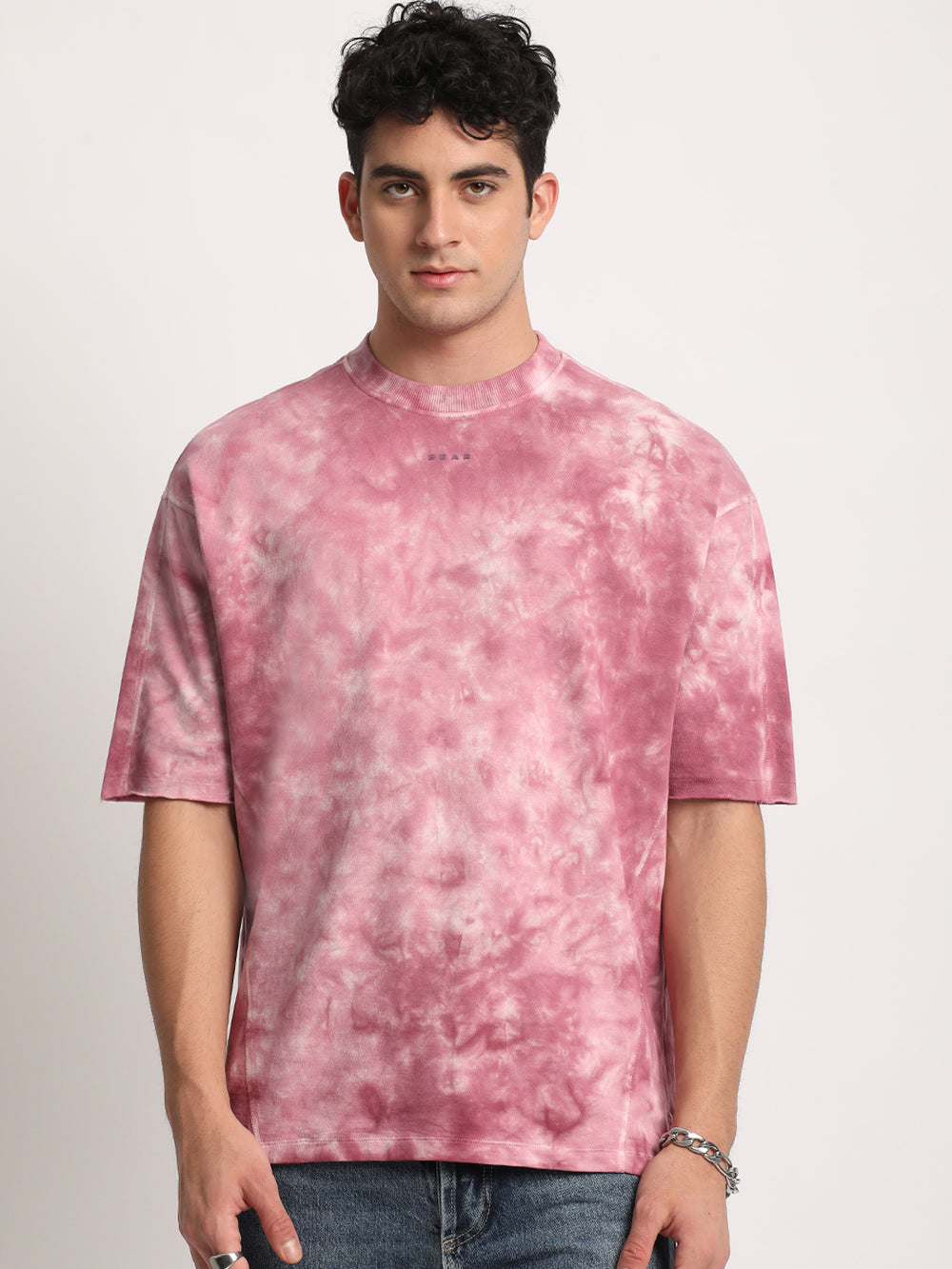 Men Purple Tie and Dye Oversized Fit Round Neck T-shirt