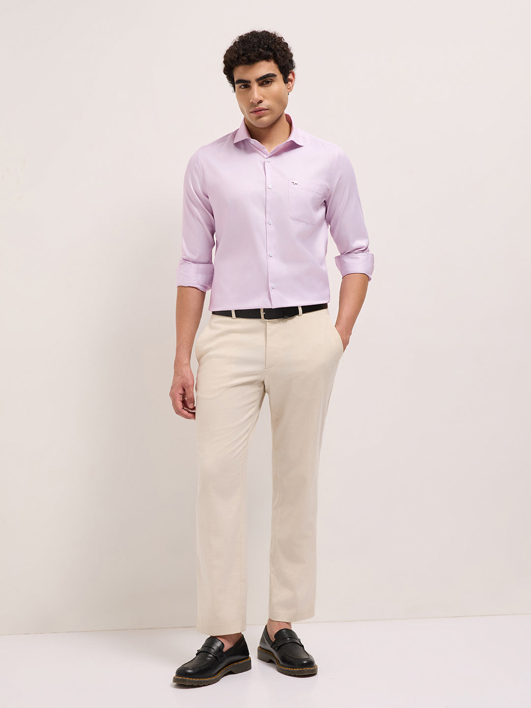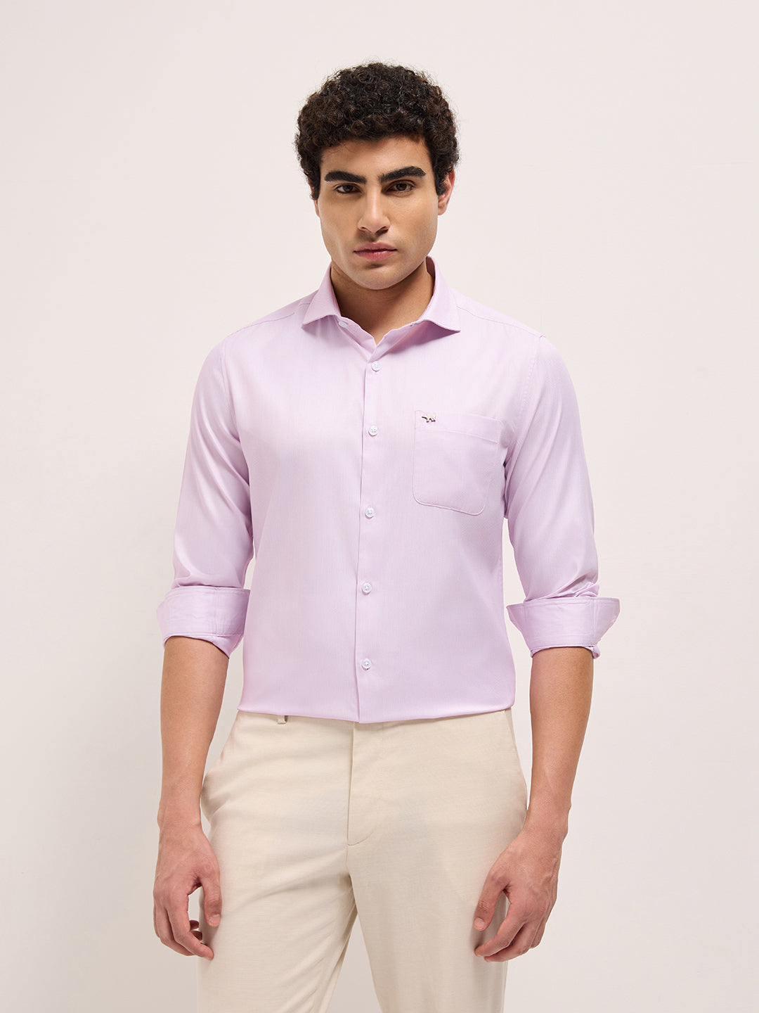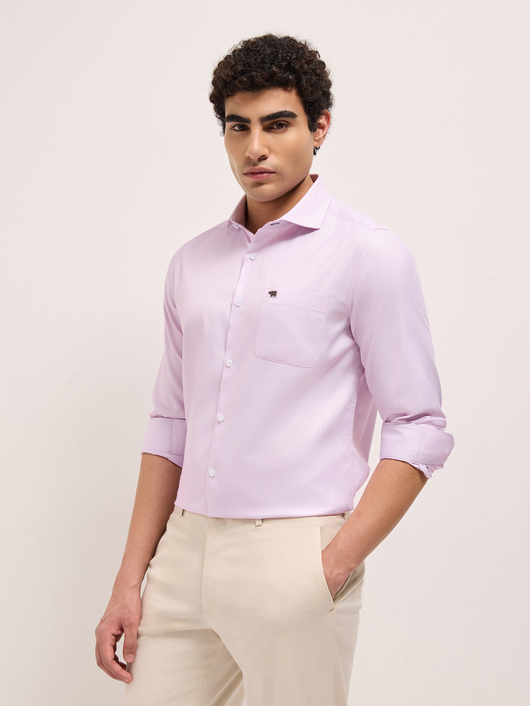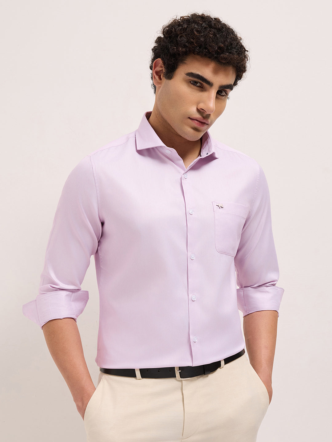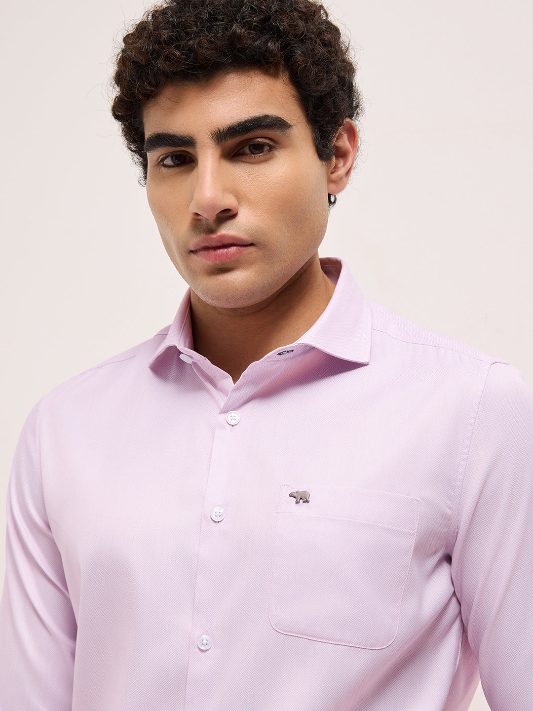Pink Herringbone Woven Tailored Fit Formal Shirt