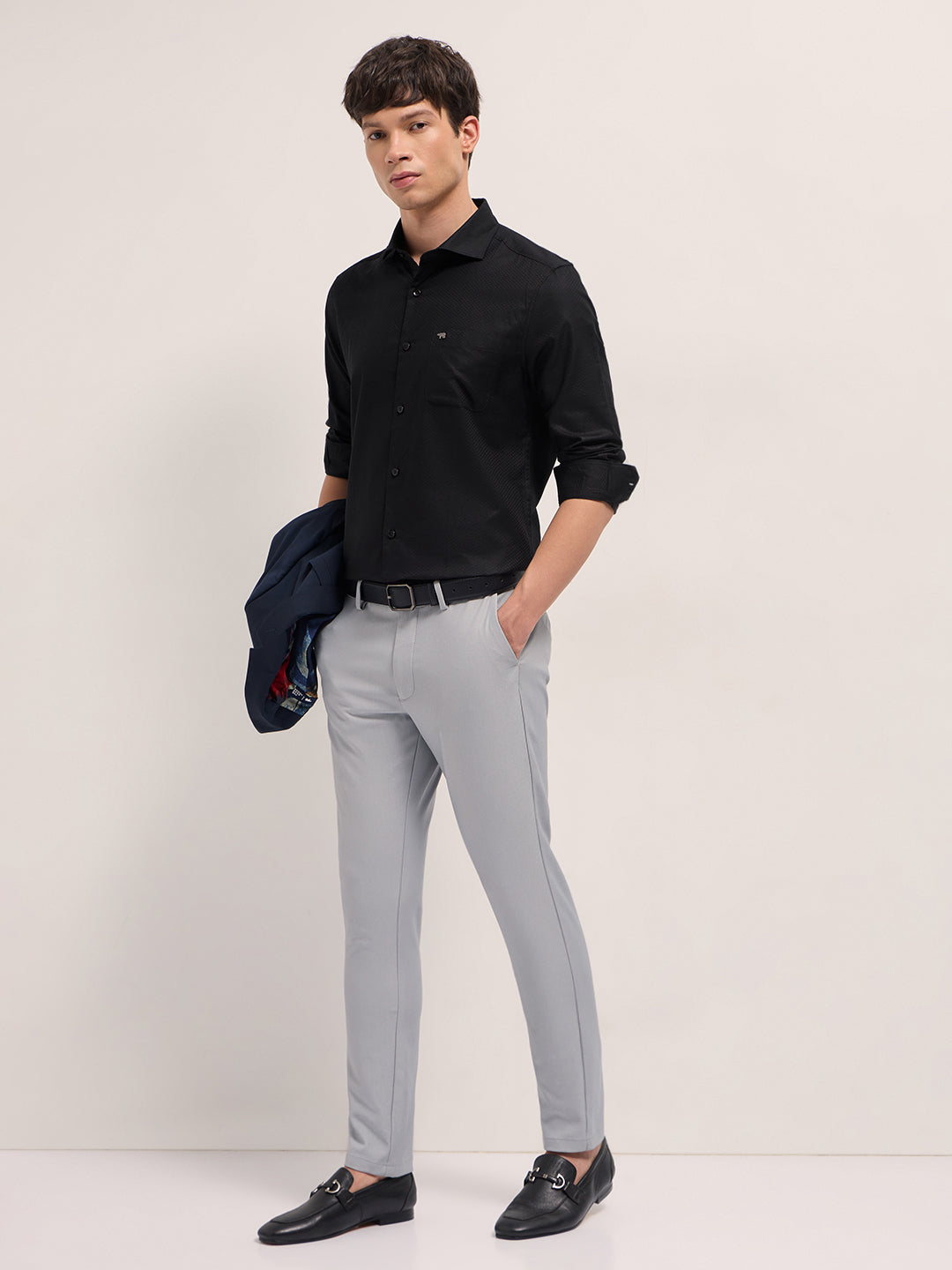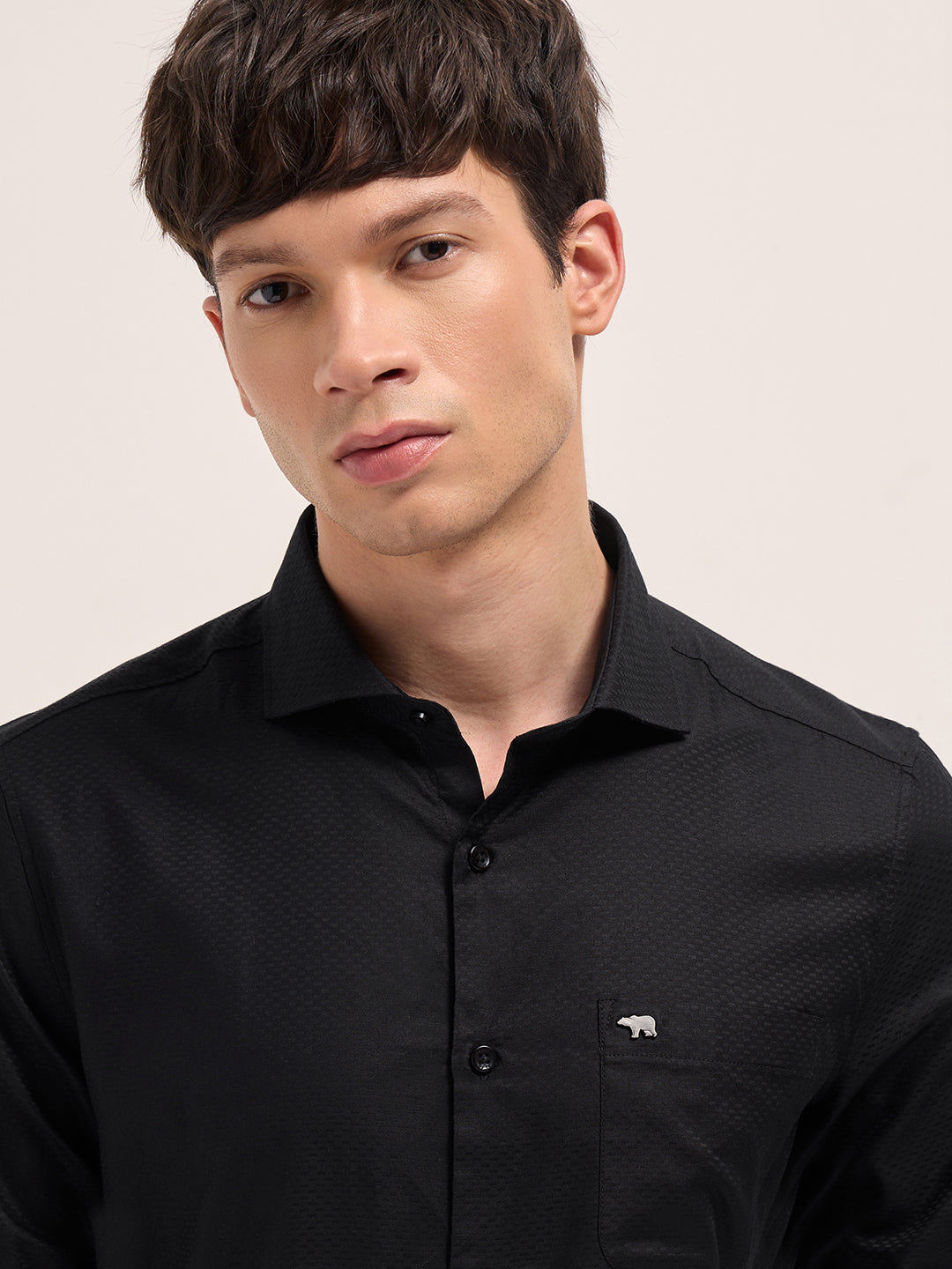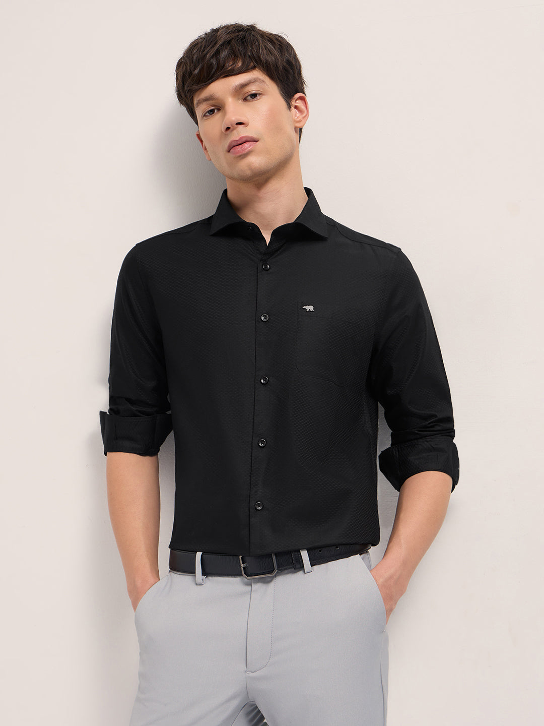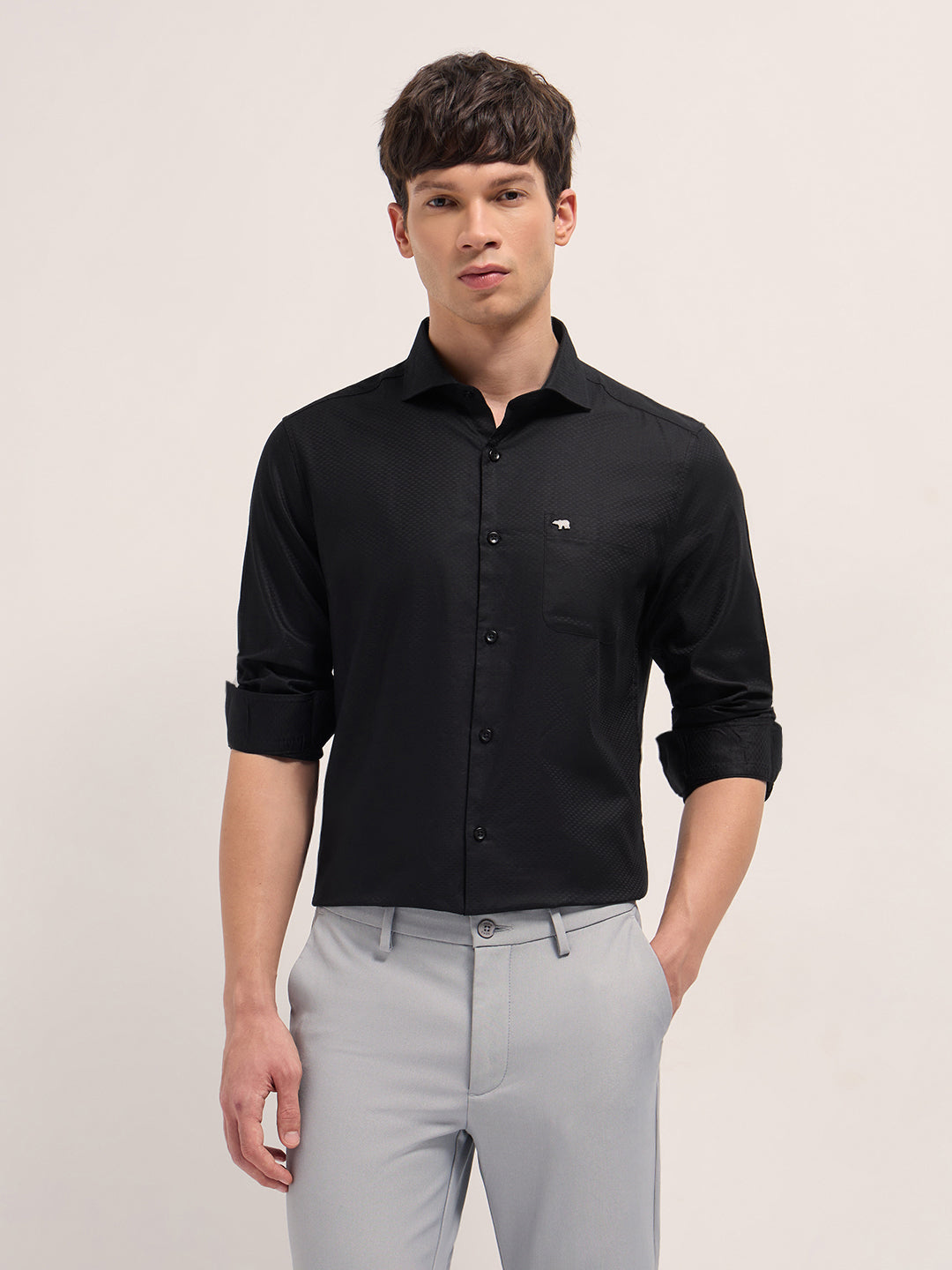 Shop Black Woven Pattern Cotton Tailored Fit Formal Shirt Online