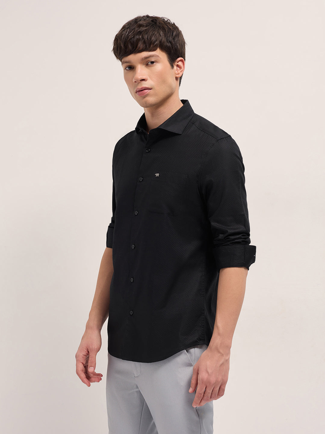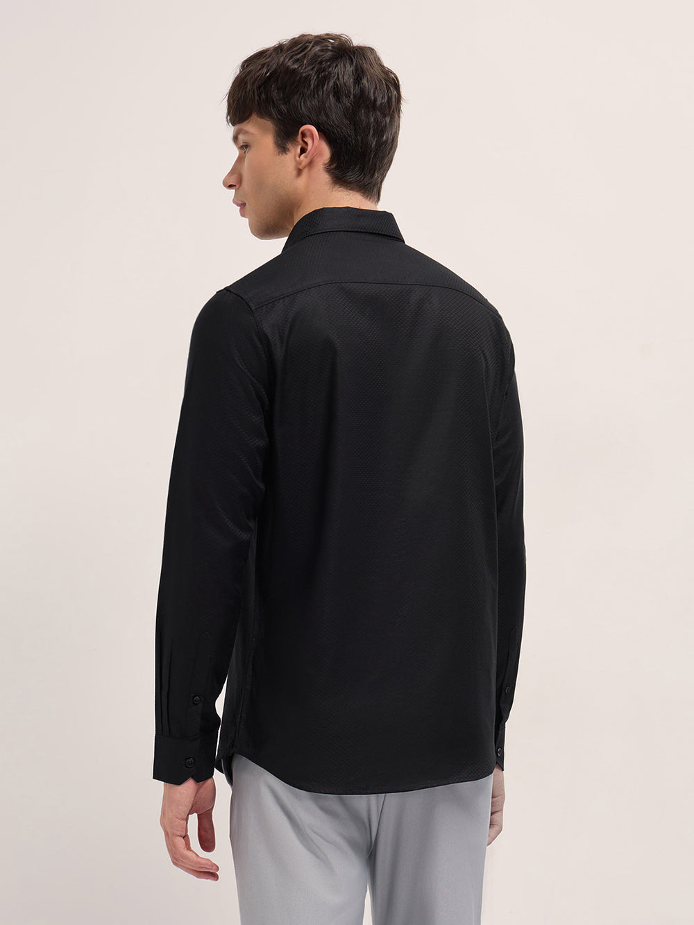 Black Woven Pattern Cotton Tailored Fit Formal Shirt