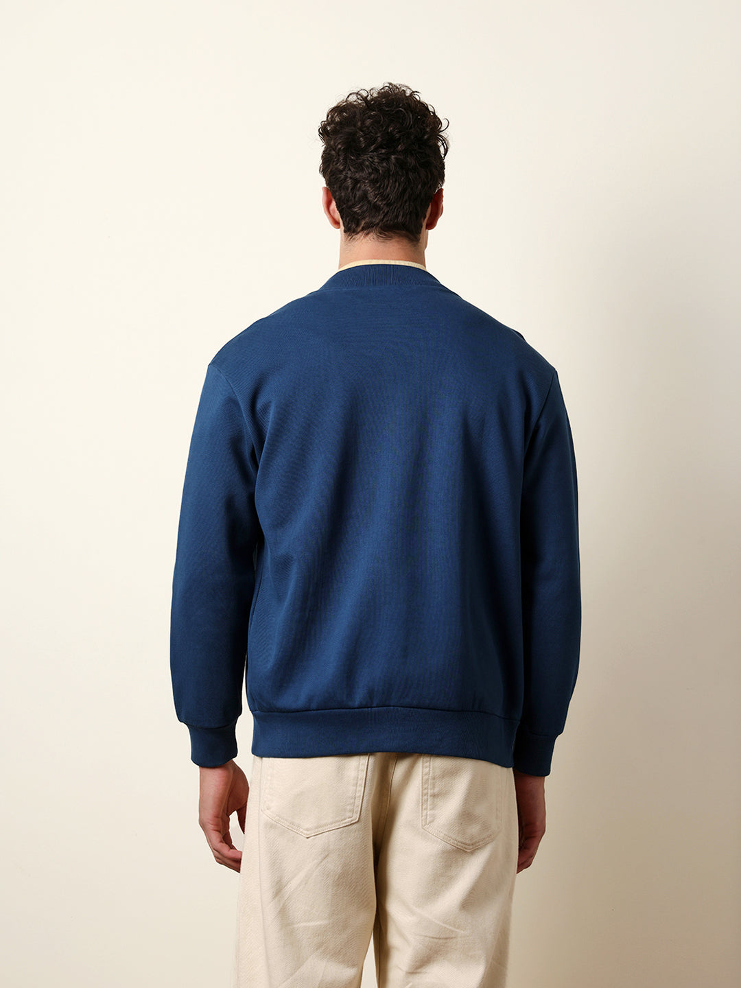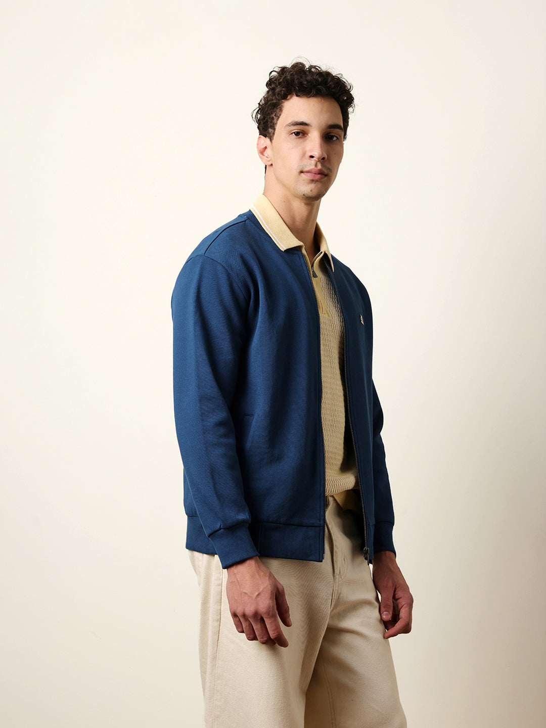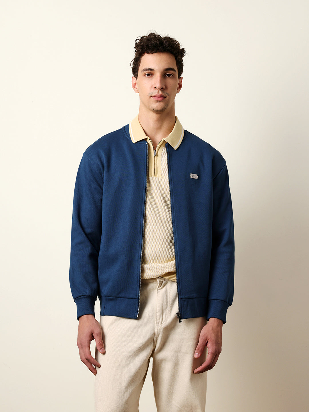 Blue Regular Fit Mock Neck Jacket with Zipper Closure – Classic Solid Design