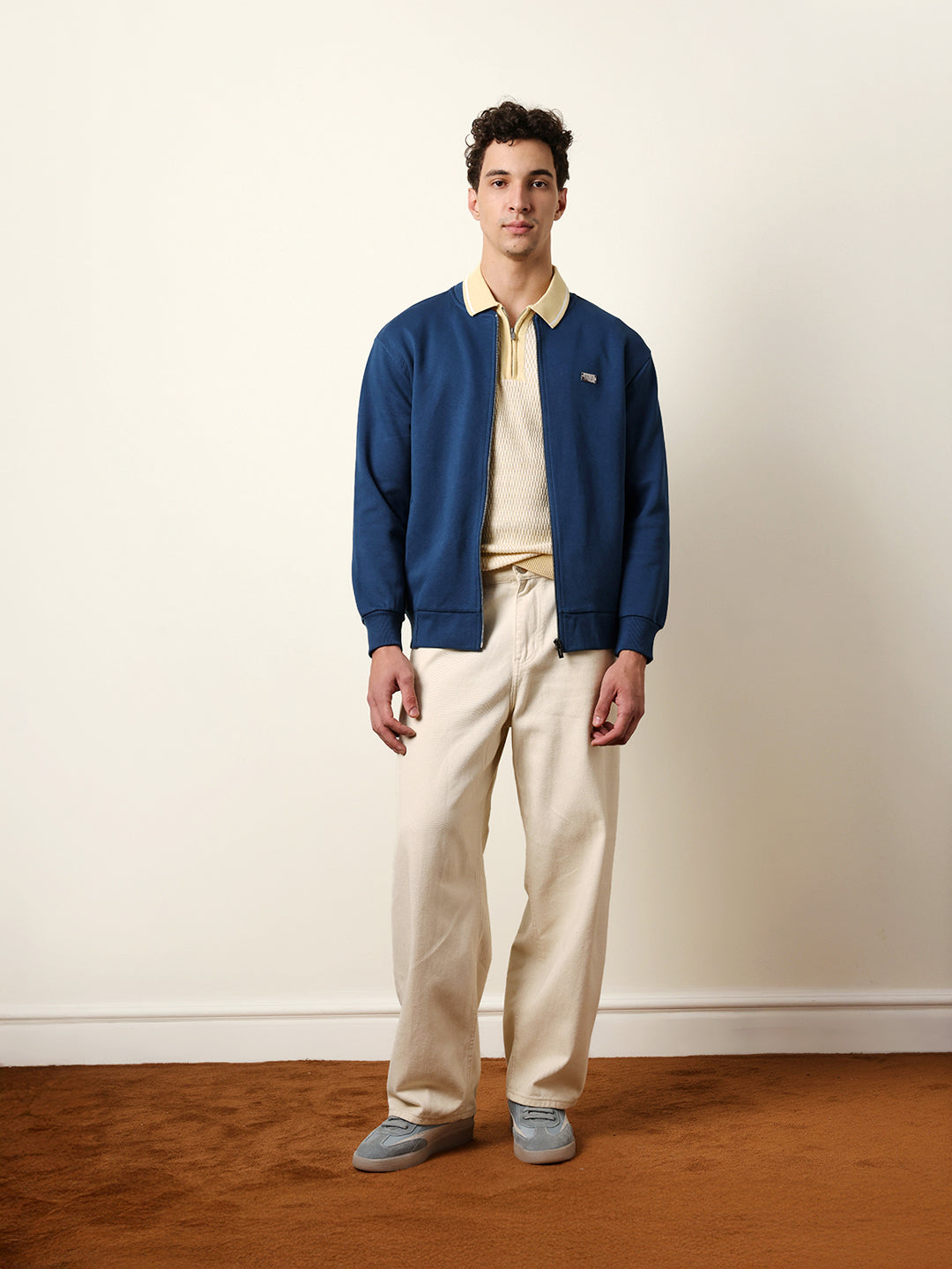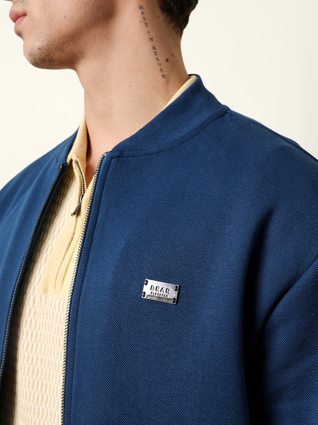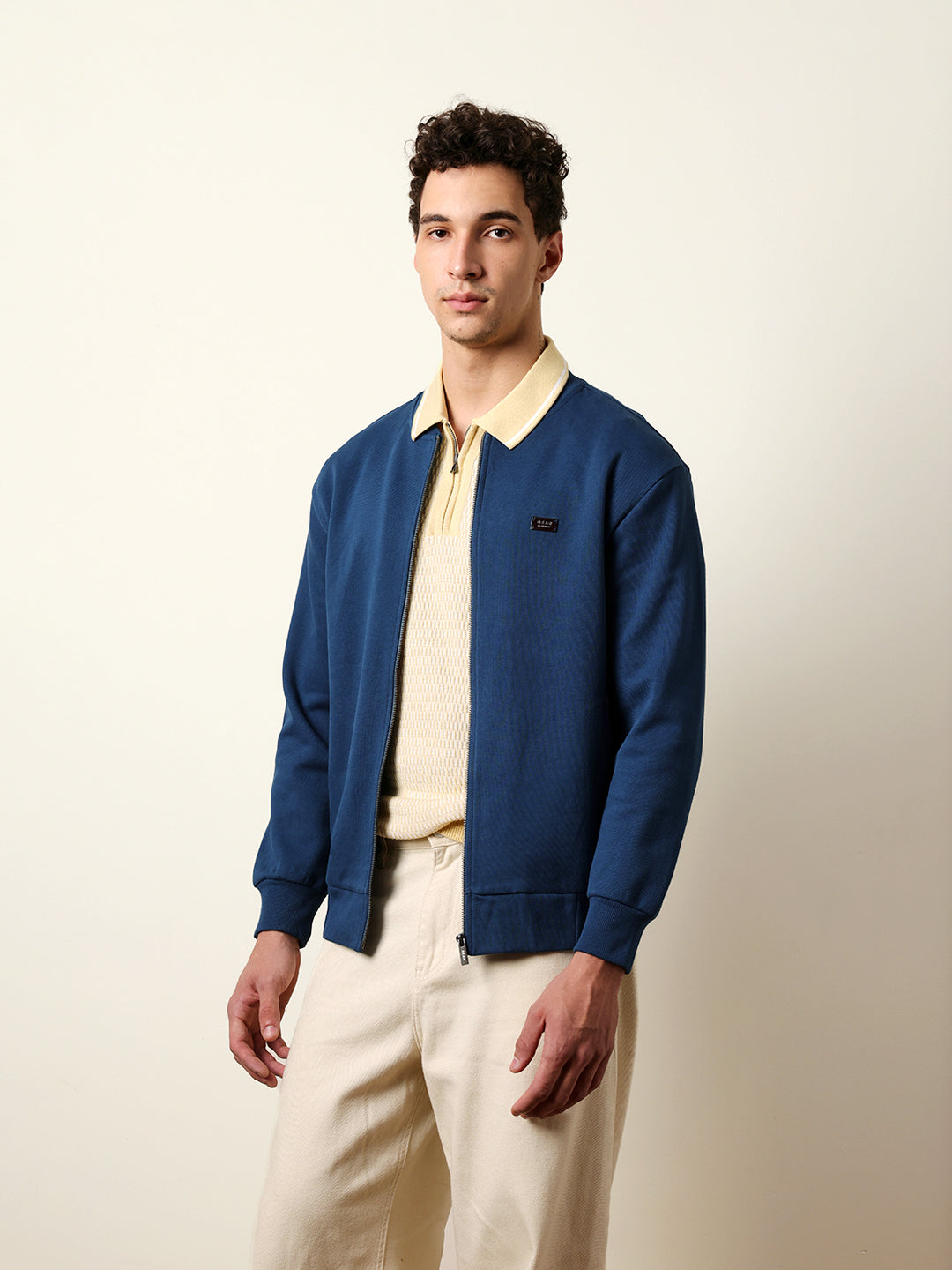 Blue Regular Fit Mock Neck Jacket with Zipper Closure – Classic Solid Design