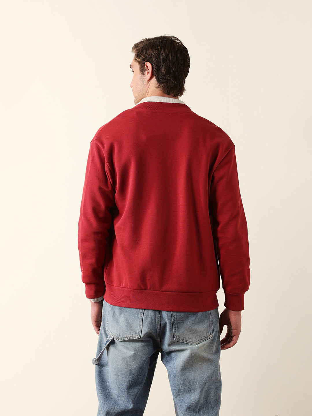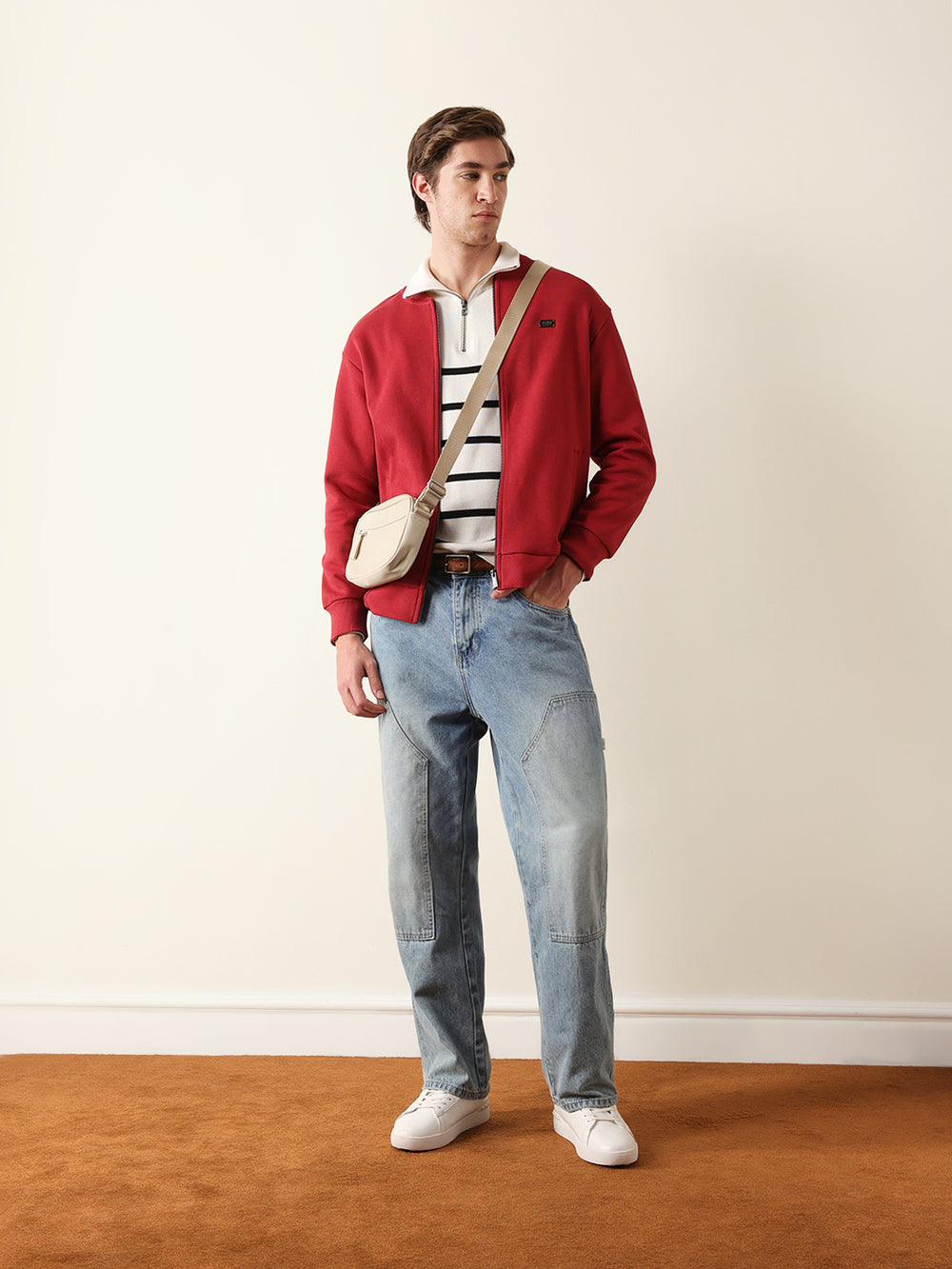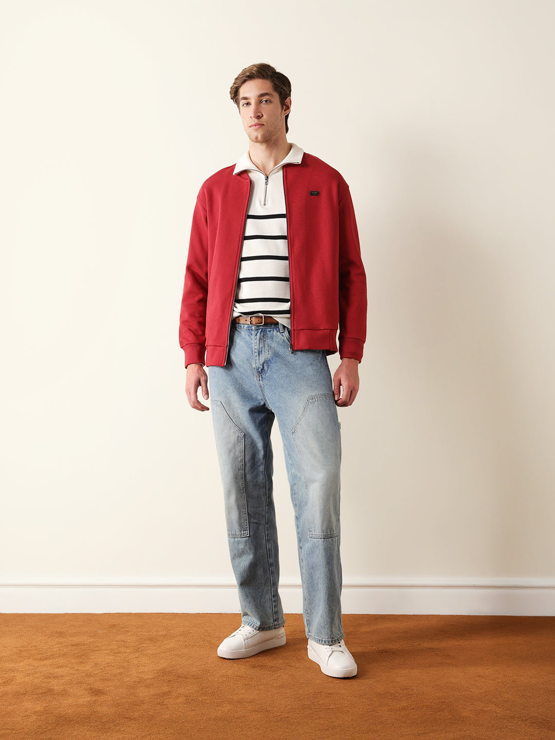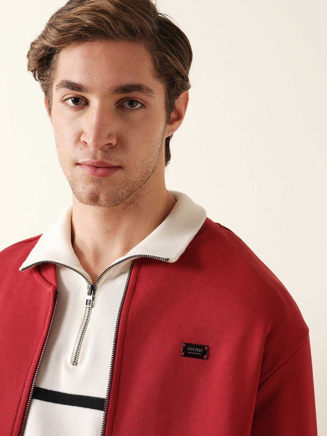 Red Relax Fit Mock Neck Jacket with Zipper Closure – Classic Solid Design