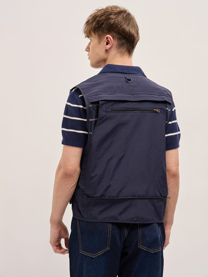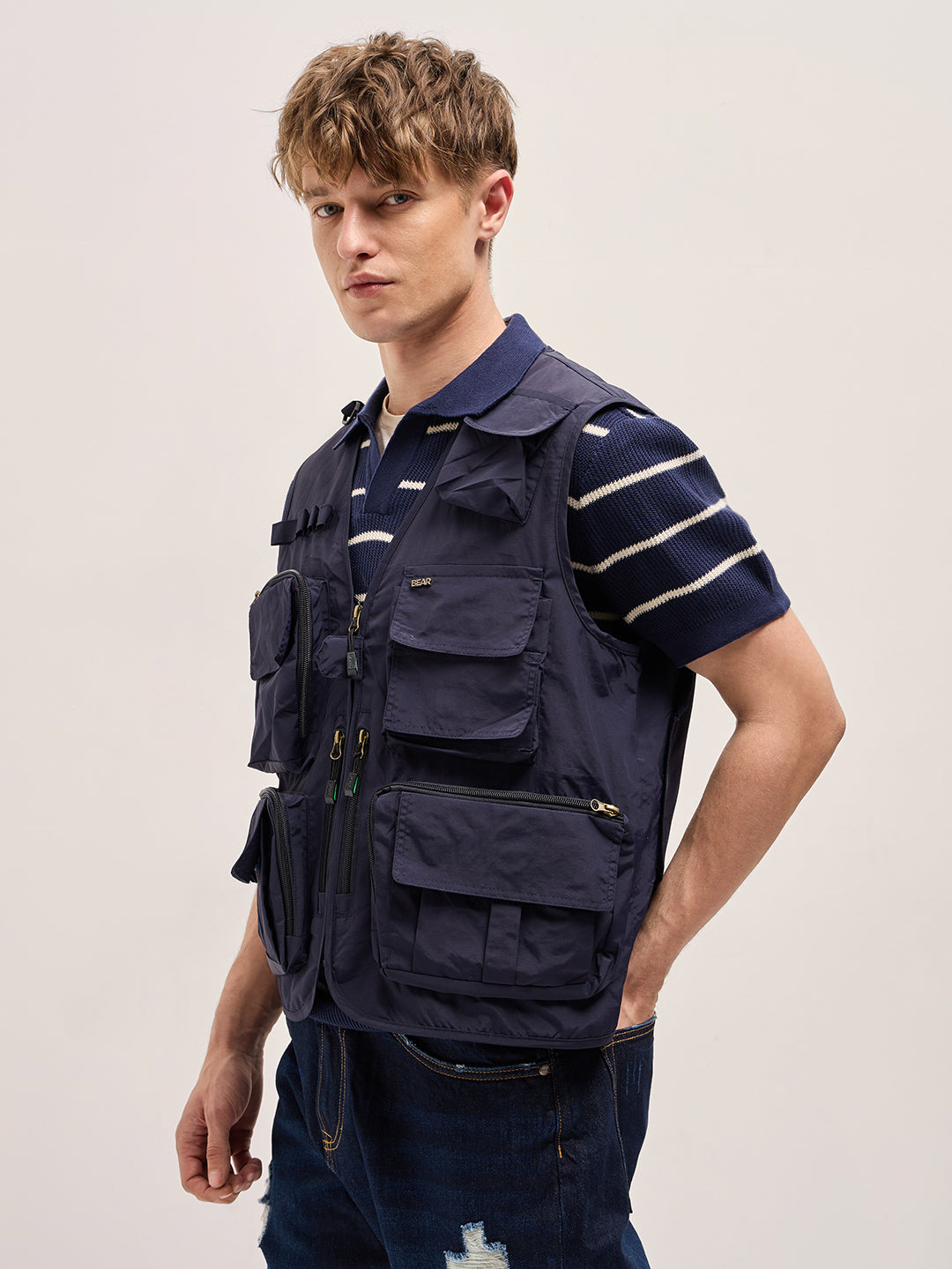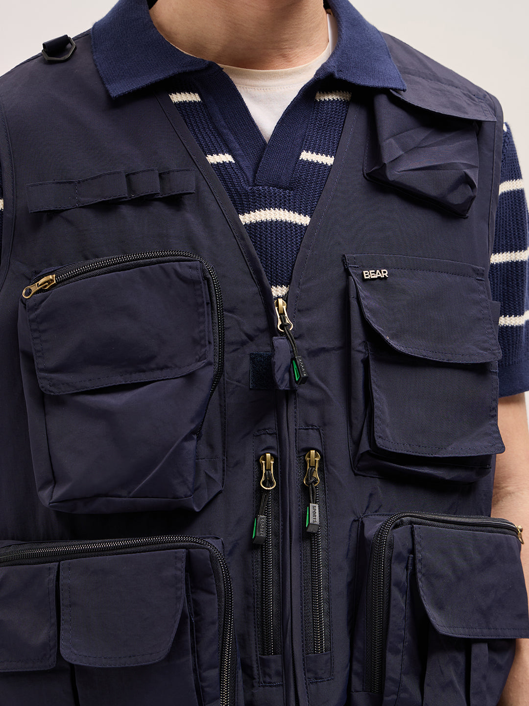 Navy Blue Outdoor Utility Multi-Pocket Vest Jacket
