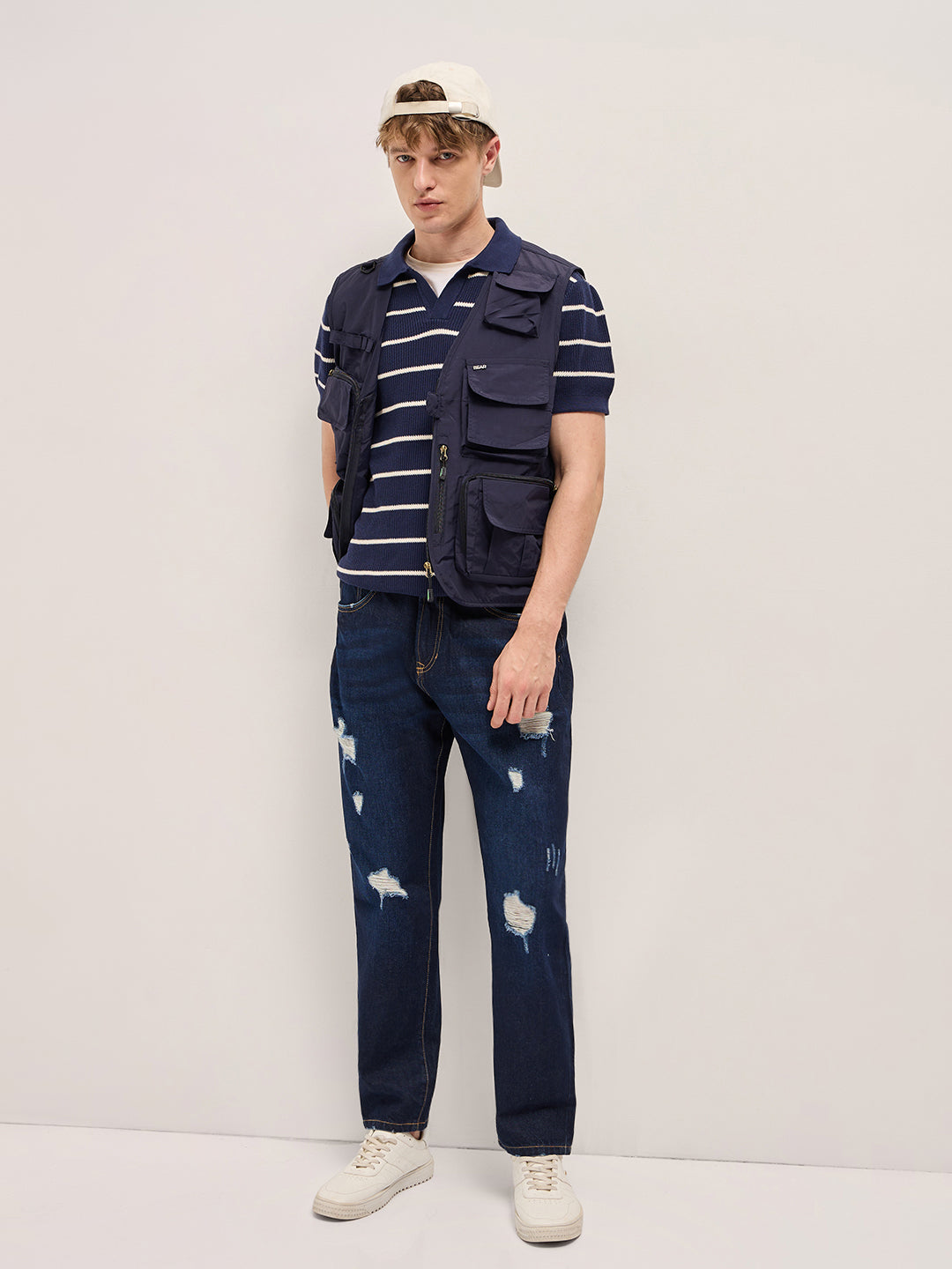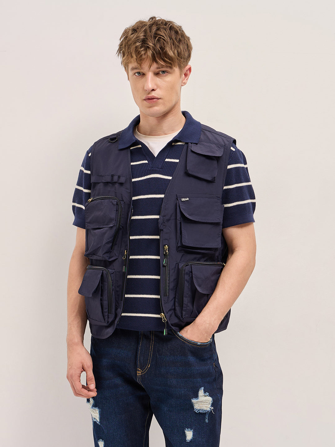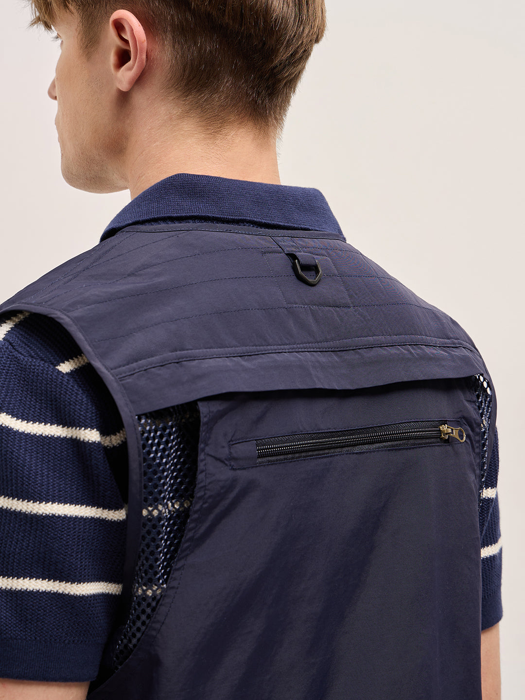 Navy Blue Outdoor Utility Multi-Pocket Vest Jacket