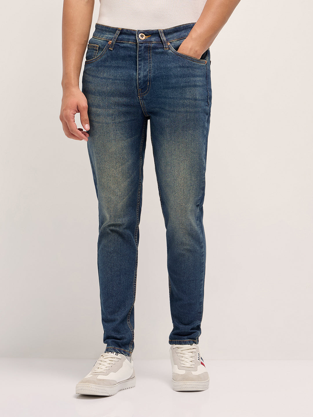 Shop Blue Mid-Rise Skinny Fit Jeans with Mid Fade Online